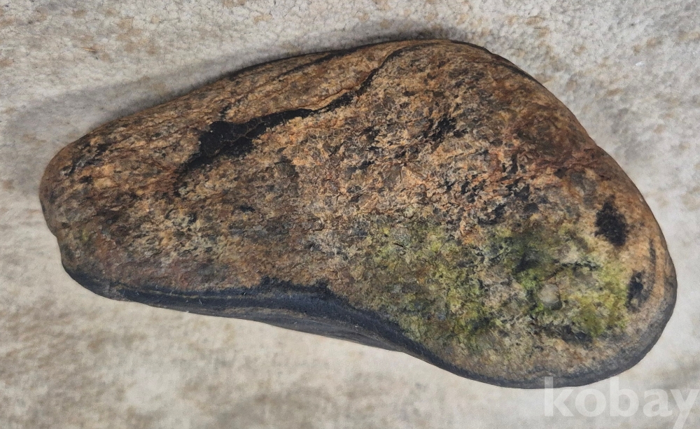 인위적으로 먹물을 입힌듯 수석 밑부분 둘레 전체가 오색인 신비로움 가득한 원산석'입니다