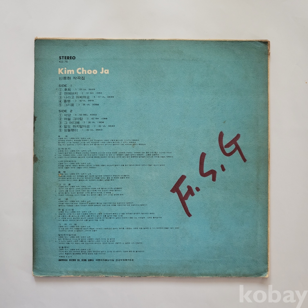 [추억의 희귀 LP 기획전] (김추자) 신중현 작곡집 / 후 회 ☆ 석 양