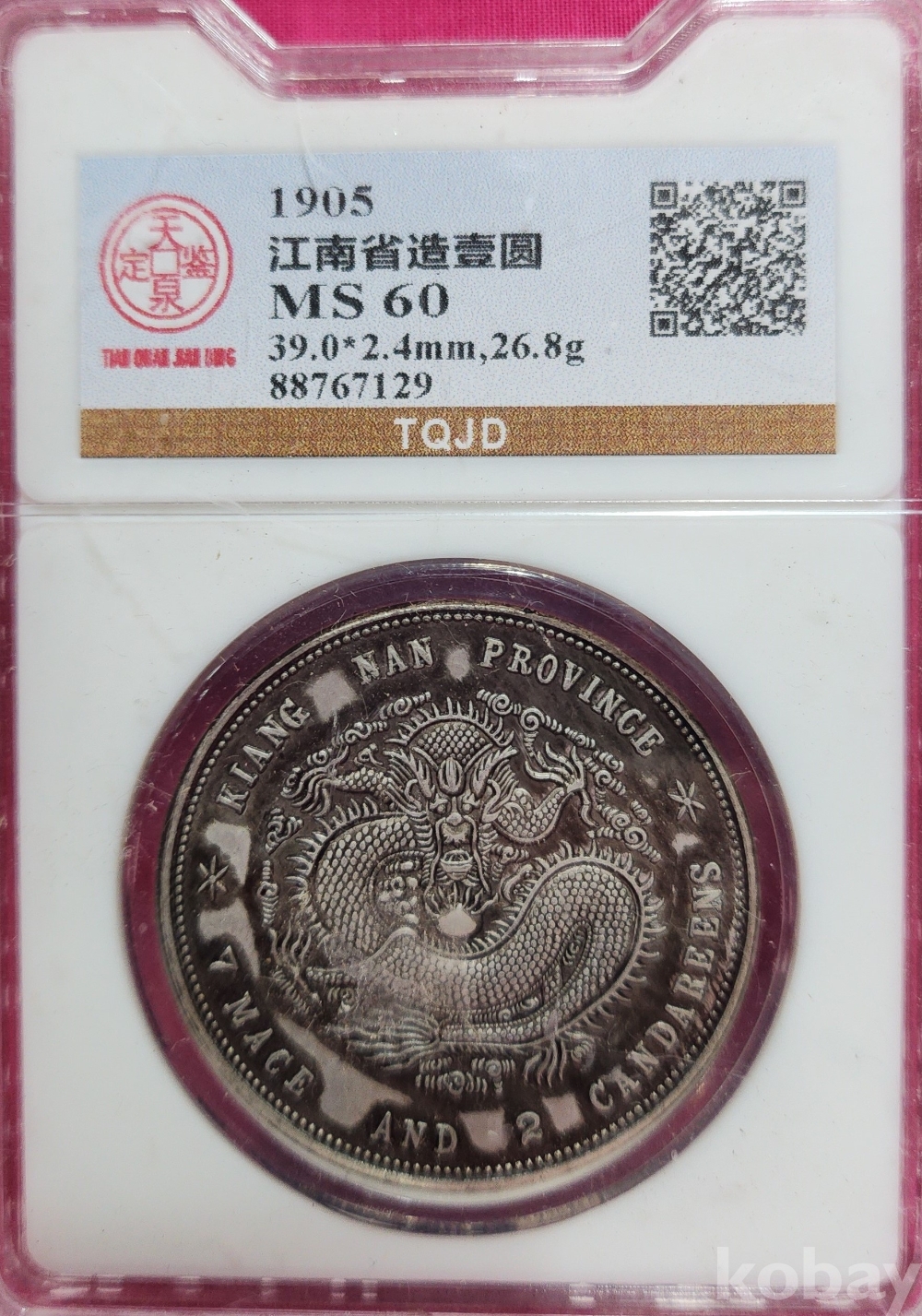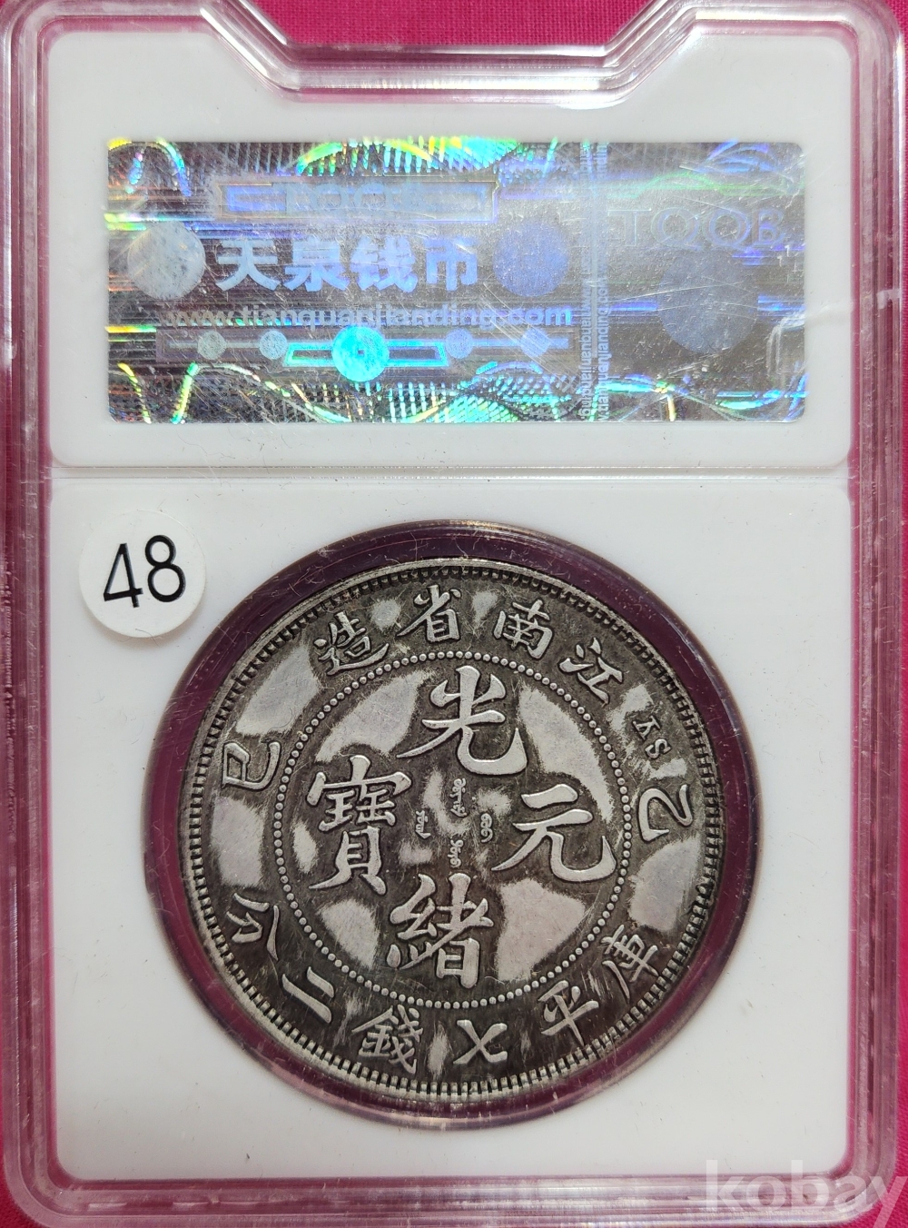 1905년 큐알코드(QR CODE)가 함께하는 은색 광서원보 (光緖元寶)' 화패로 밀봉된 상태입니다,