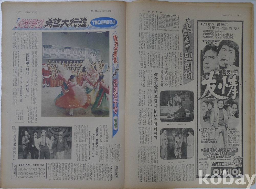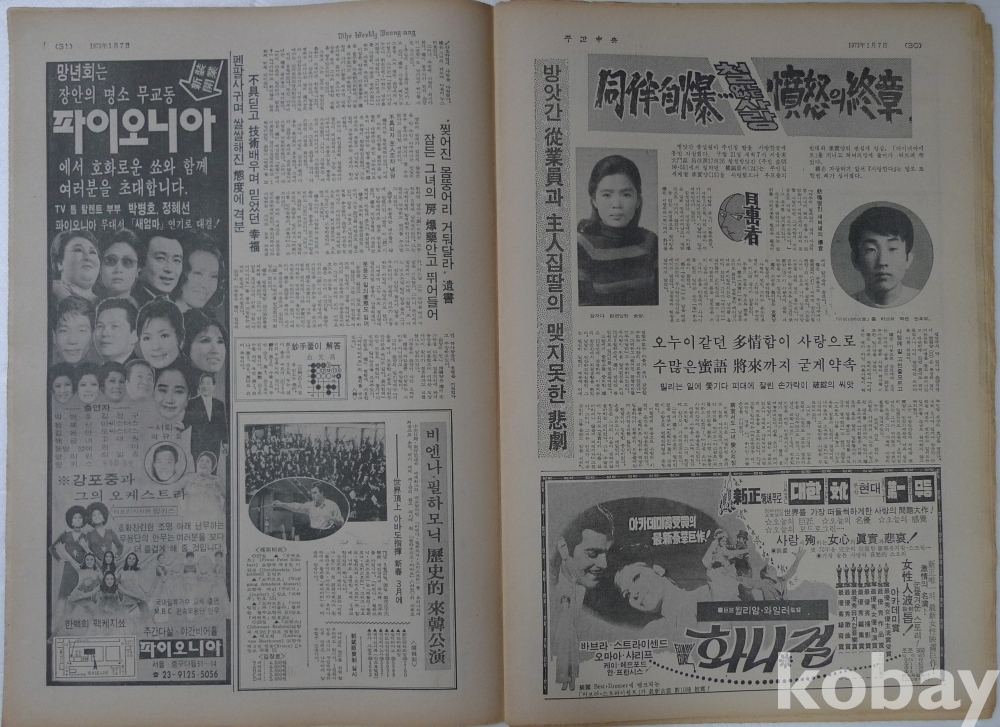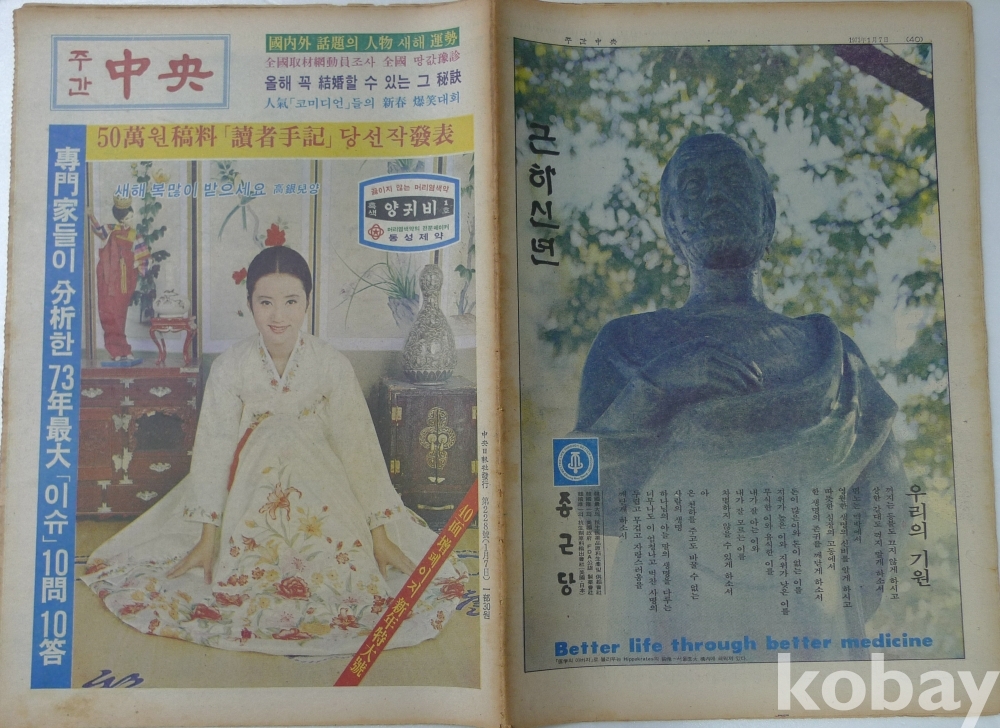 1973년 주간중앙 잡지 - 표지모델 영화배우 고은아 -