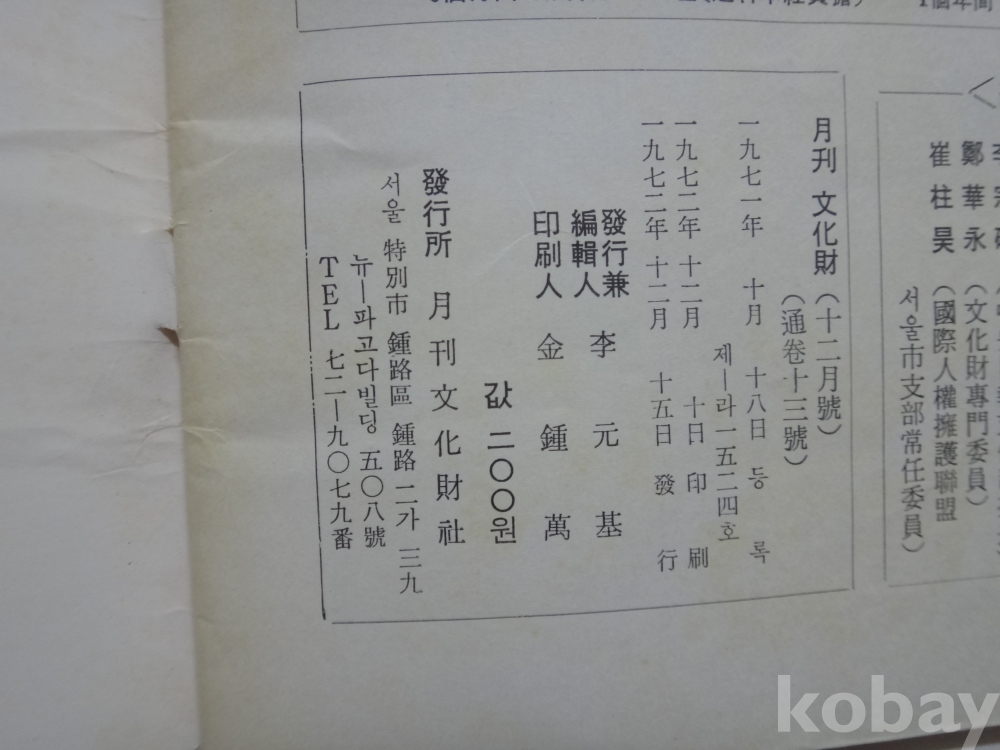 (월간) 문화재 - 안동댐 수몰지역 문화재들, 재일 한국문화재 비망록, 김천의 징 괭과리 등 (1972년)
