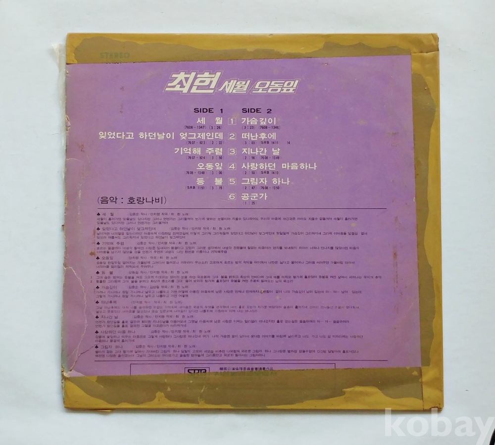 자켓상태 | VG : 주름, 접힘, 모서리 찢김 다수 | 음반상태 | EX : 재생에 영향 없는 가벼운 기스 존재 | 발매정보 | 알수없음 | 가사지여부 | 무 |