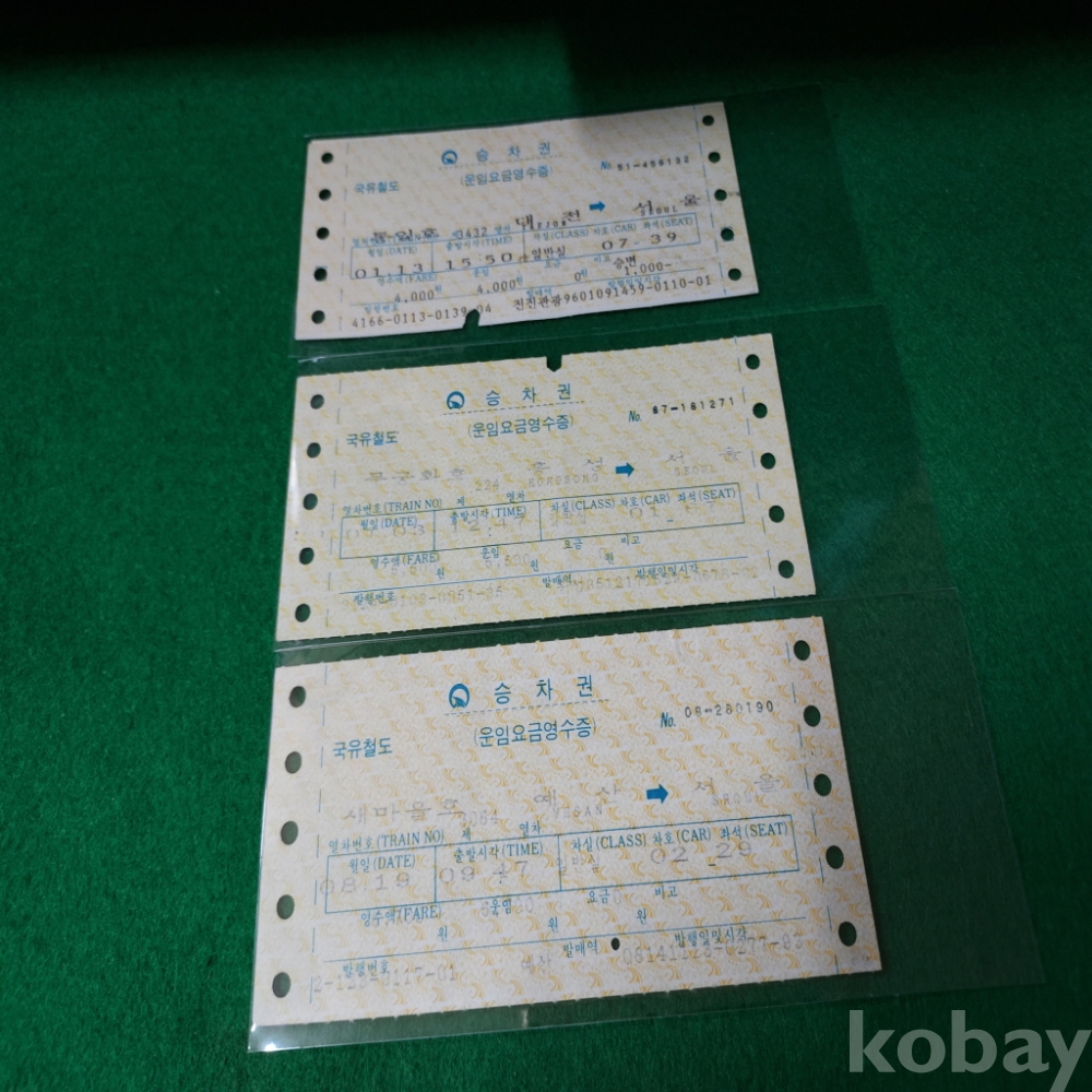 국유철도 새마을,무궁화,통일호 승차권 3매