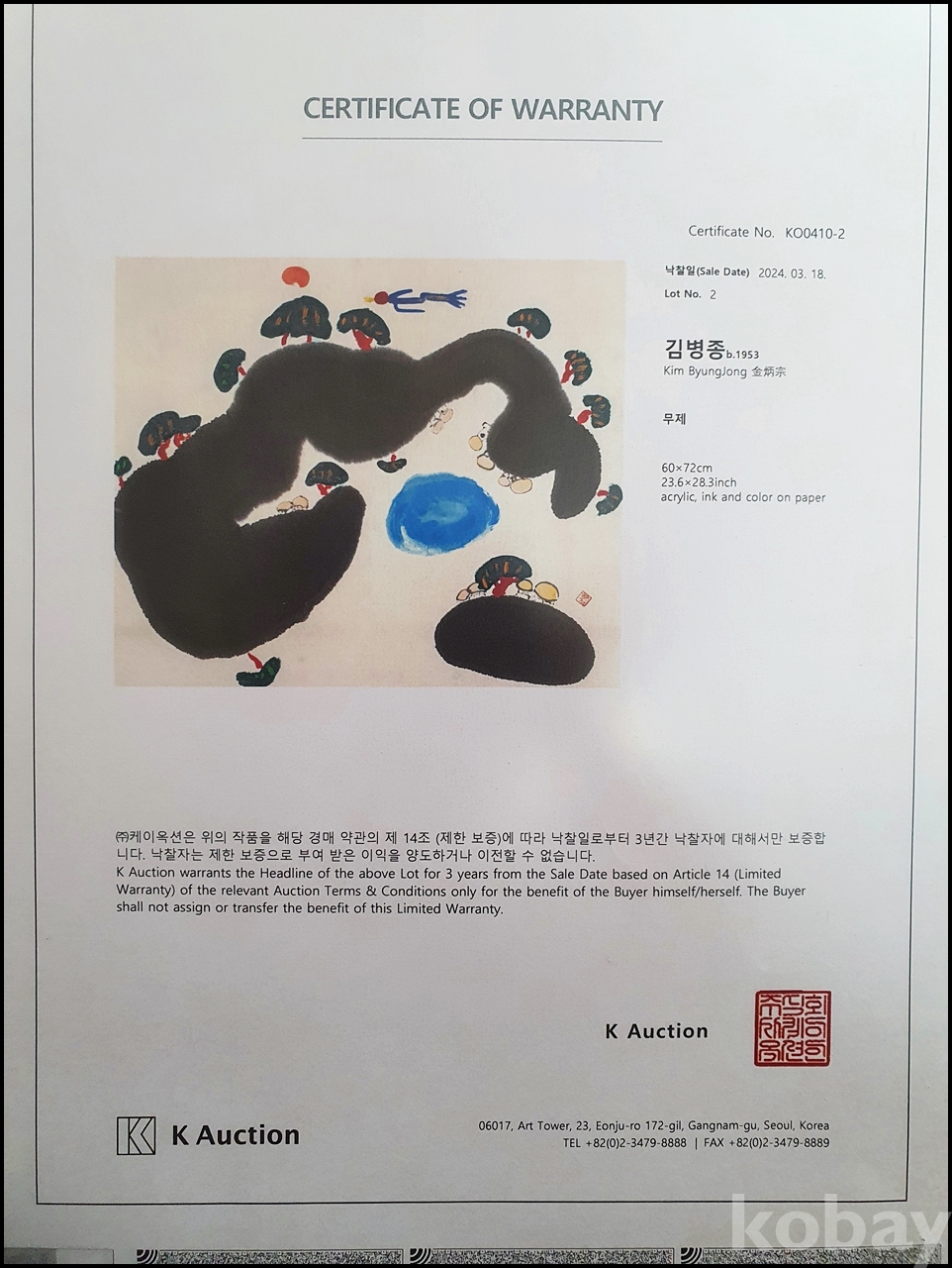 기 타: 종이에 수채,유채 혼용/ 케이옥션 보증서 有