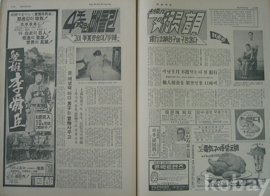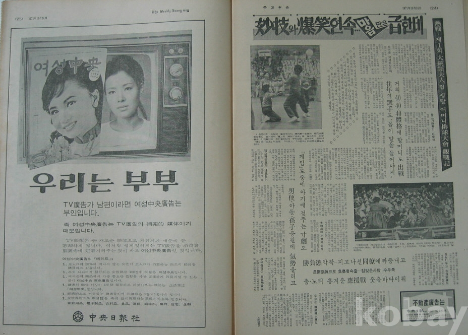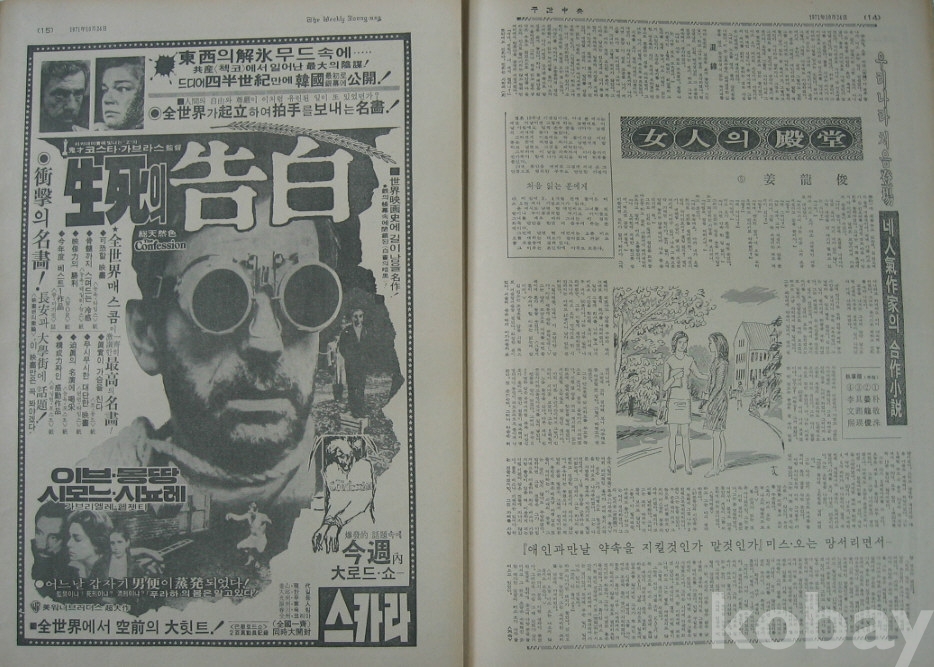 1971년 주간중앙 잡지 - 표지모델 탤랜트 지윤성 -