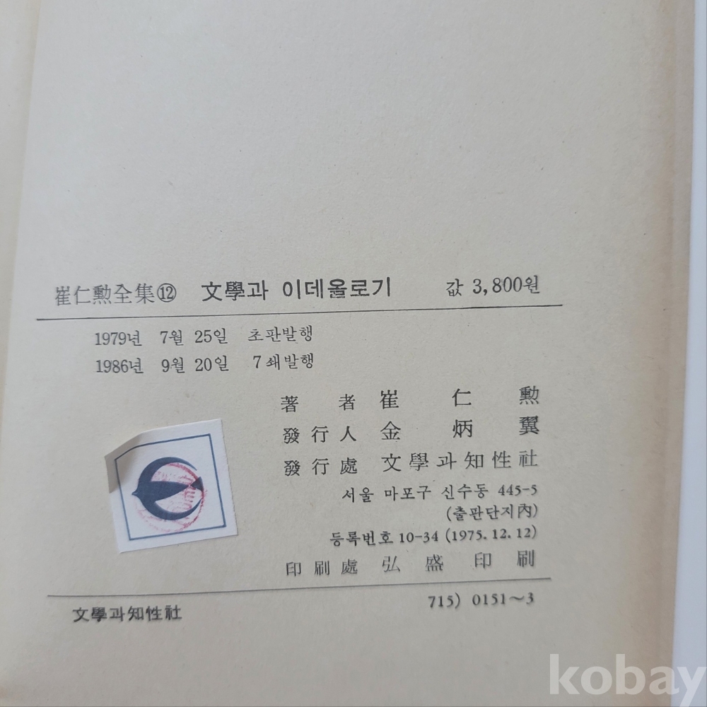 중급 : 표지없음/ 바램/ 필기 낙서/ 직인/ 갈라짐
