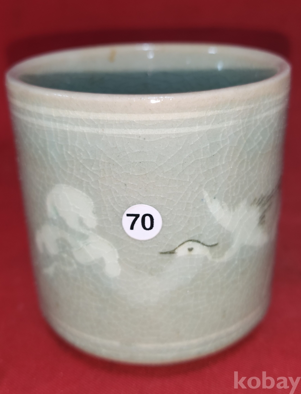 1세대 유명 도예가 도암 지순탁 (池順鐸, 1912년 4월 30일 ~ 1993년 9월 22일) 作 청자 구름과 학(雲鶴)문양 잔입니다,