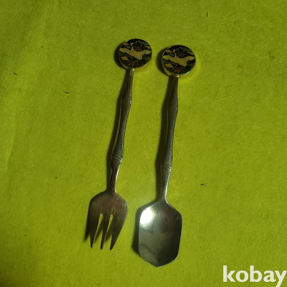 (((근현대사자료/군자료))) 오래전 십장생 그림있는 대한민국 육군 티스푼/티포크