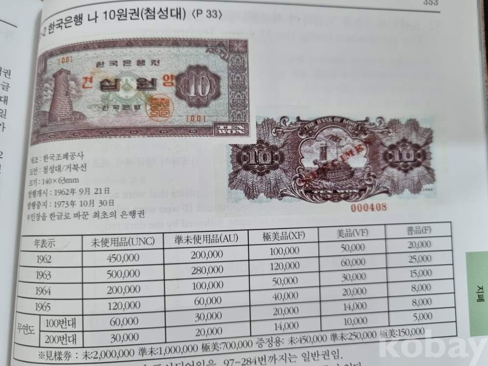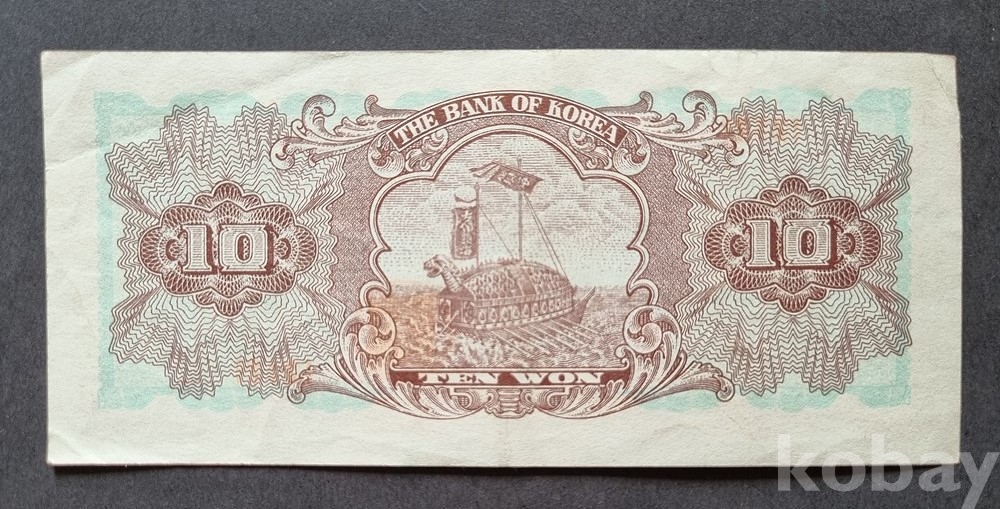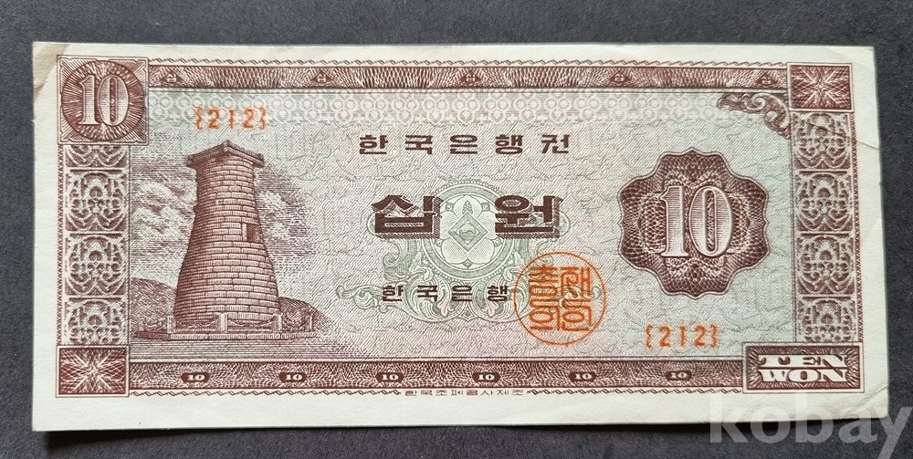 가1-96 / 한국은행권 지폐 "십원" (첨성대, 거북선) 발행개시 1962년 9월21일