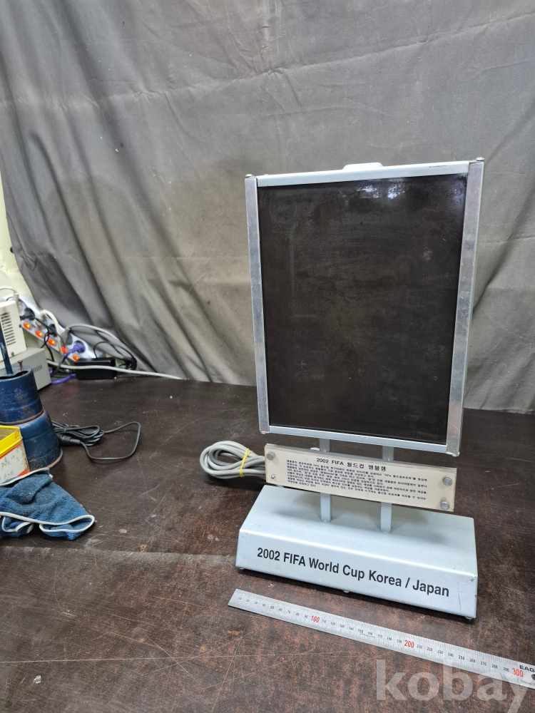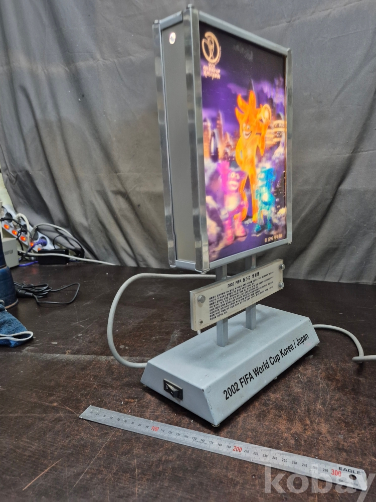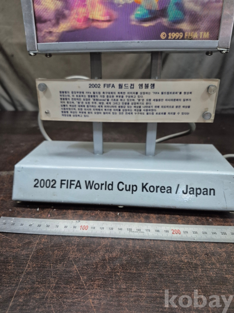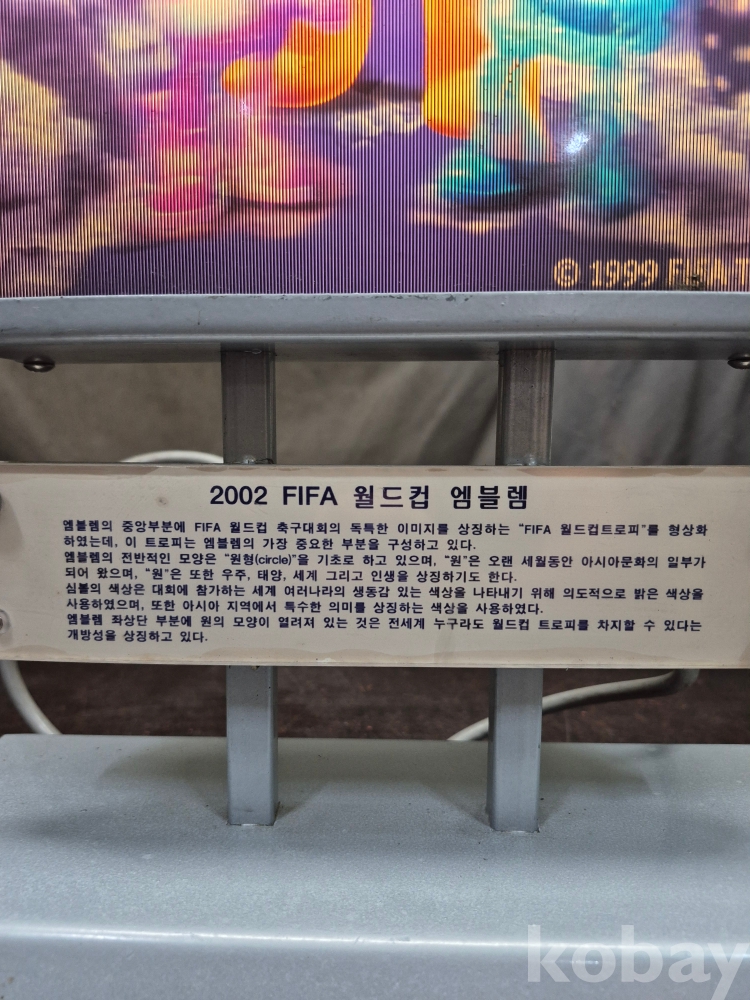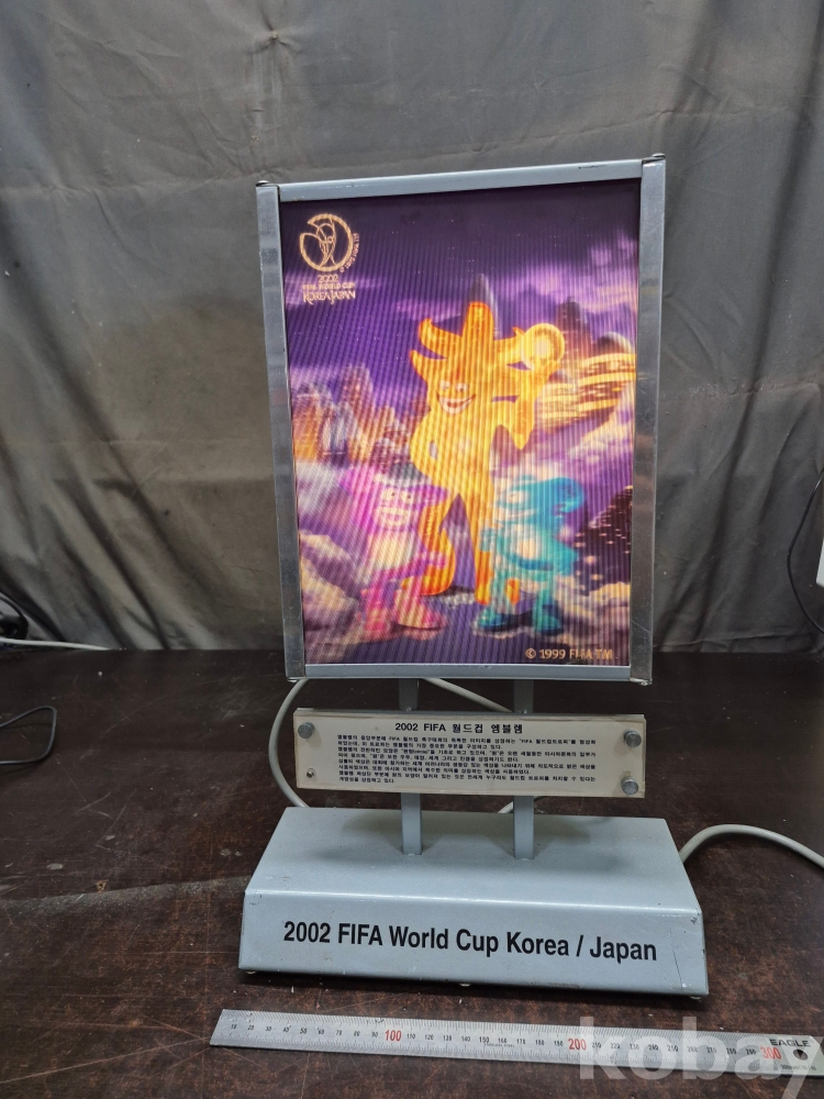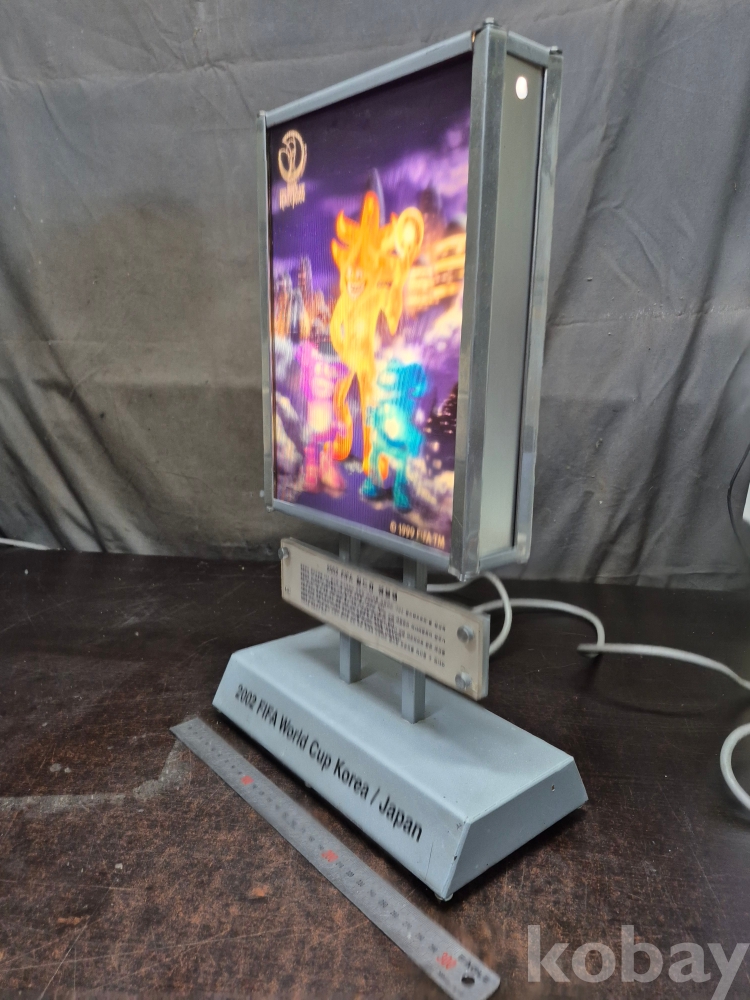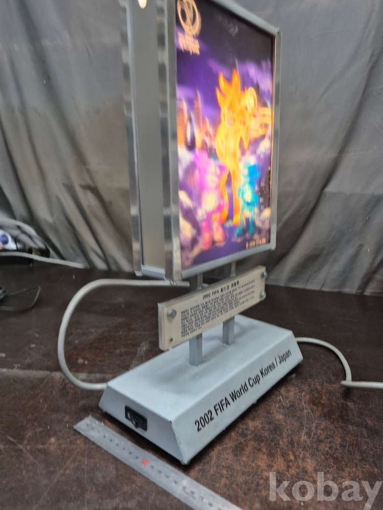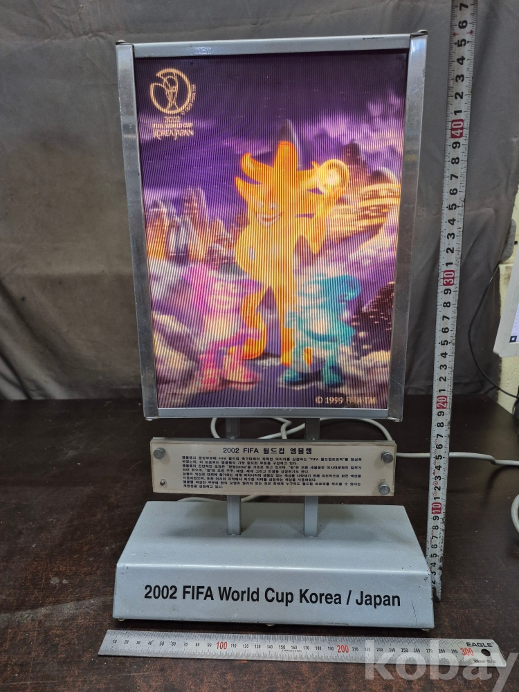 2002년 피파 월드컵 코리아 재펜 홍보용 광고판 제작일 1999년 재질 철과 알루미늄에 형광등과 홀로그램으로 2002년 한일 월드컵 홍보용 앰블럼이 되어 있어요 전원220볼트