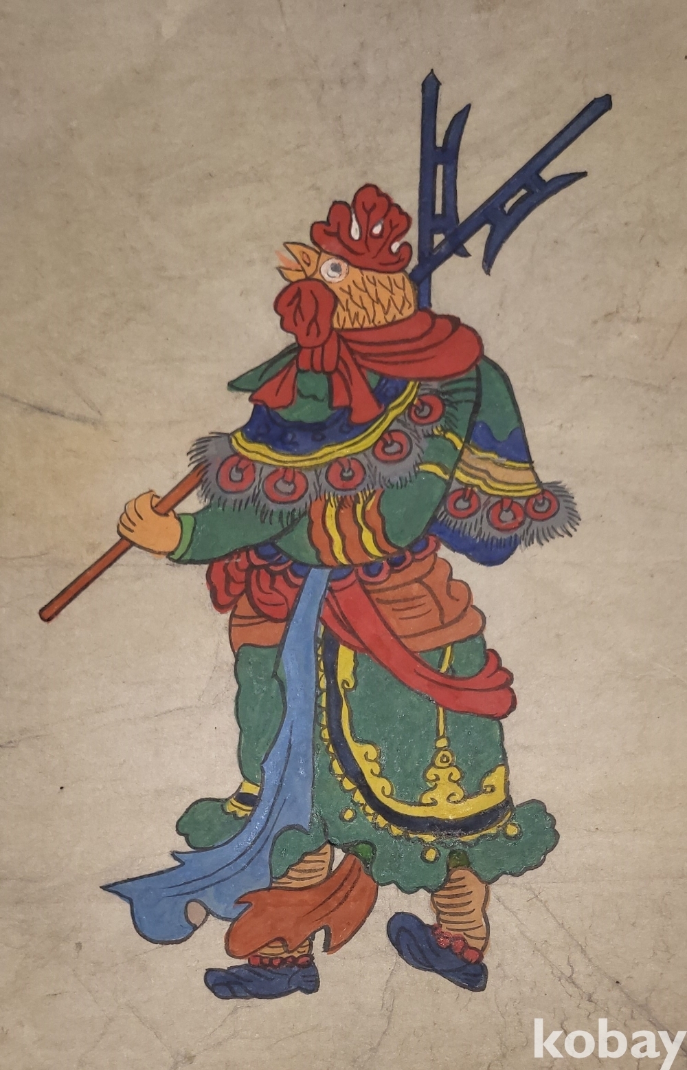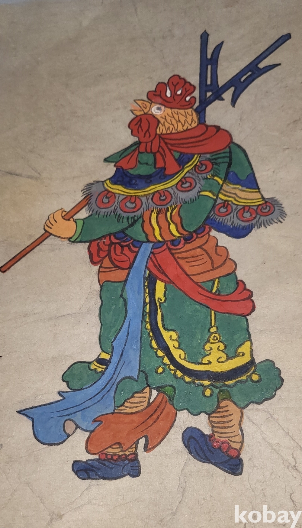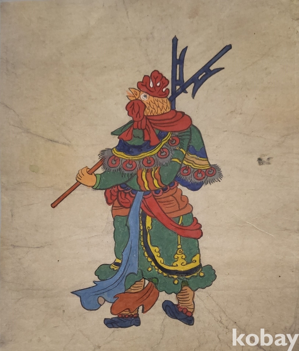 구한말 연대 갖춘 장지 바닥에 당채로 그려진 동물 형상 그림입니다,