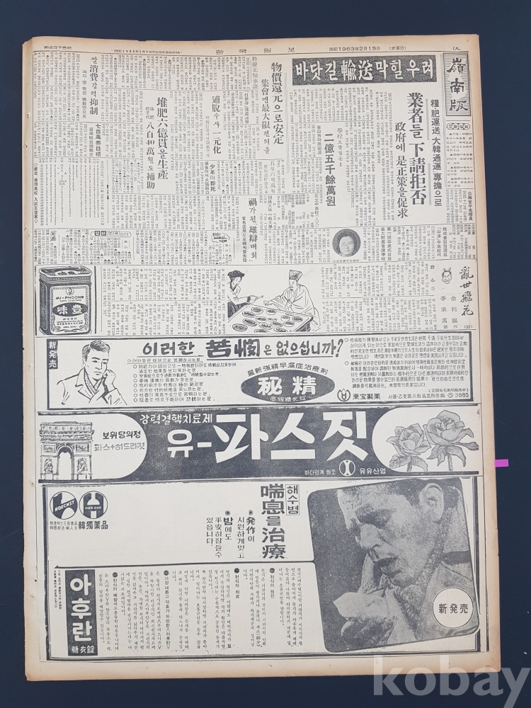 **** 한국일보/1963년 2월 13일/4면*비타-홈 유한양행 등 광고 포함
