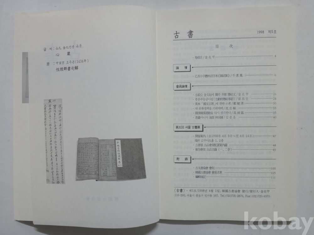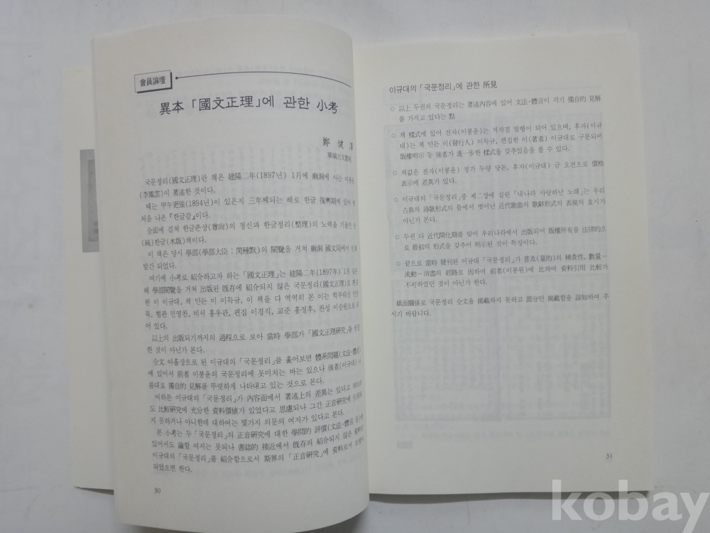 고서 - 을해 소자체 목활자본(어시책), 이본 국문정에에 관한 소고 등 (1998년, 한국고서협회)