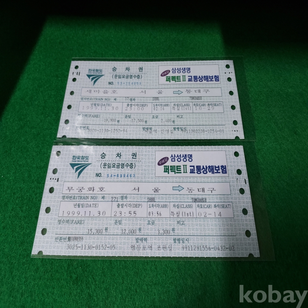 한국철도 지공승 새마을, 무궁화특실승차권 2매 사용제