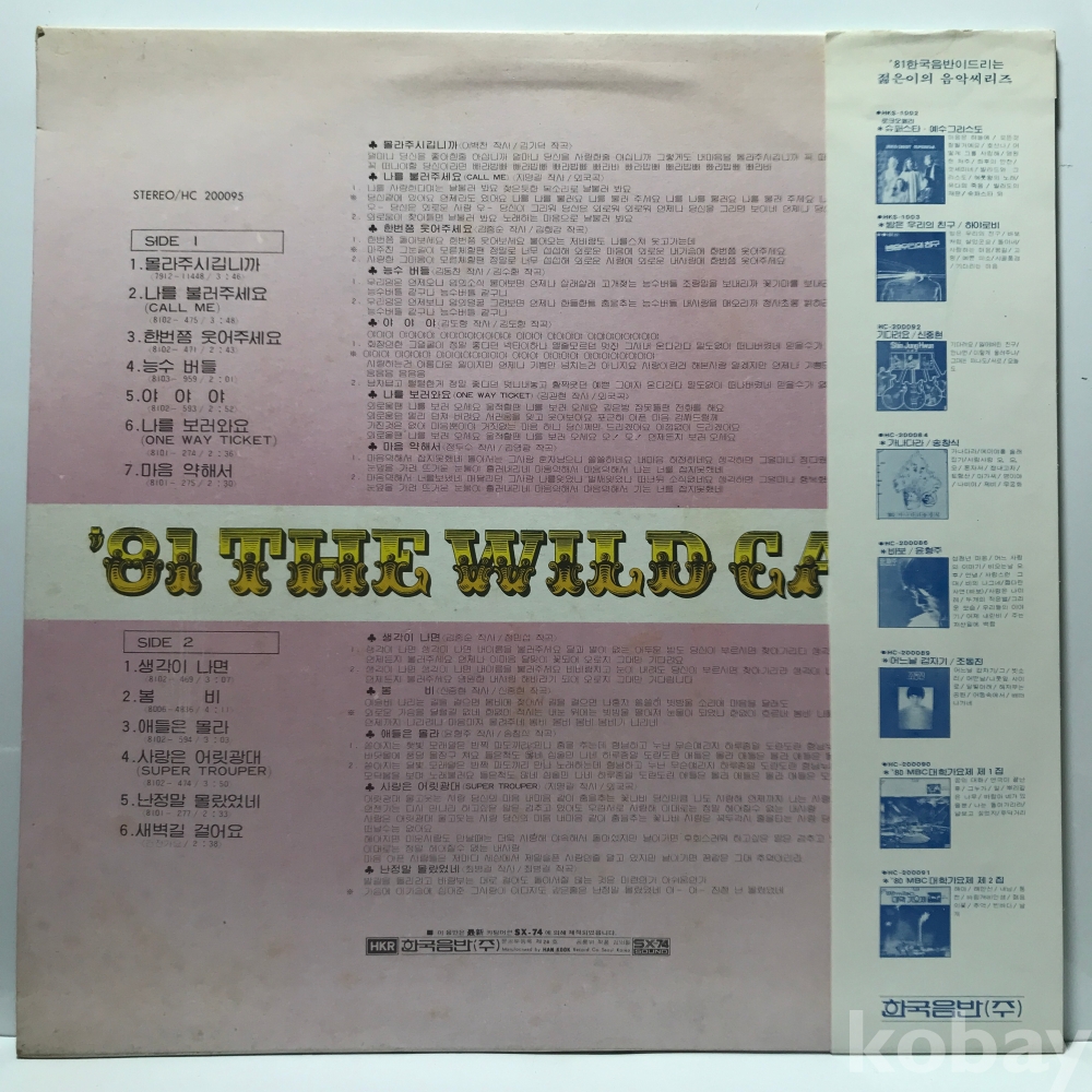LP 34,810-62 와일드 캐츠 들고양이들 - 마음약해서 . ` 81 한국 자켓 EX+ 알판 EX+