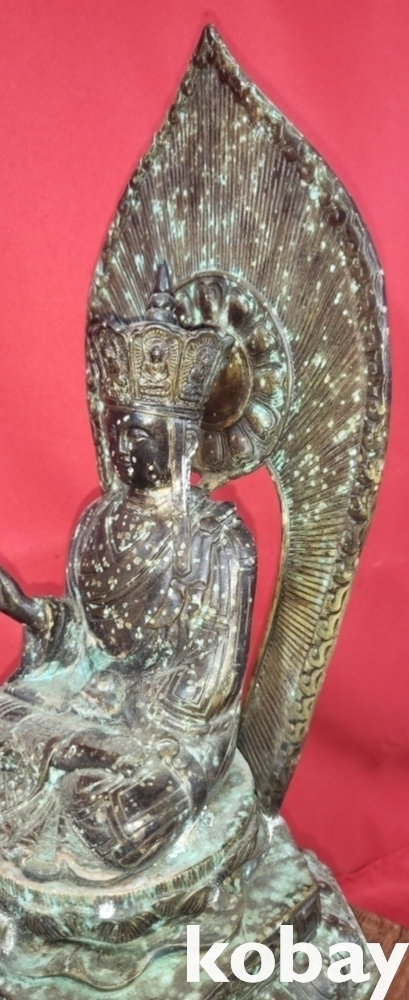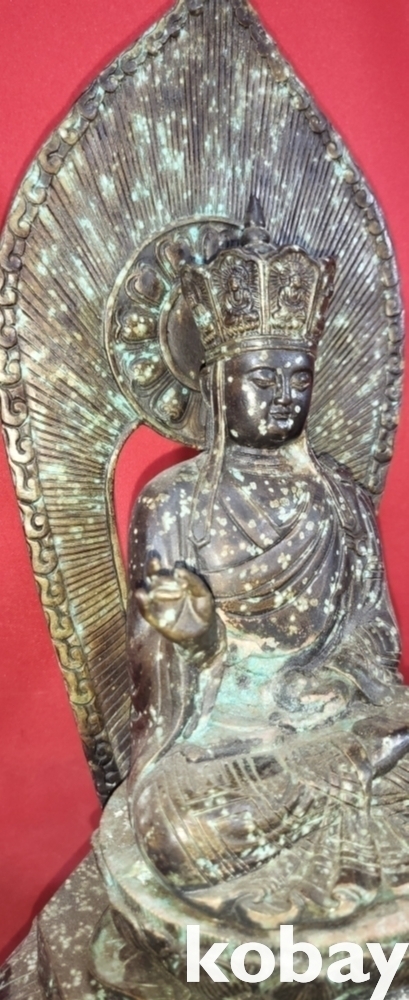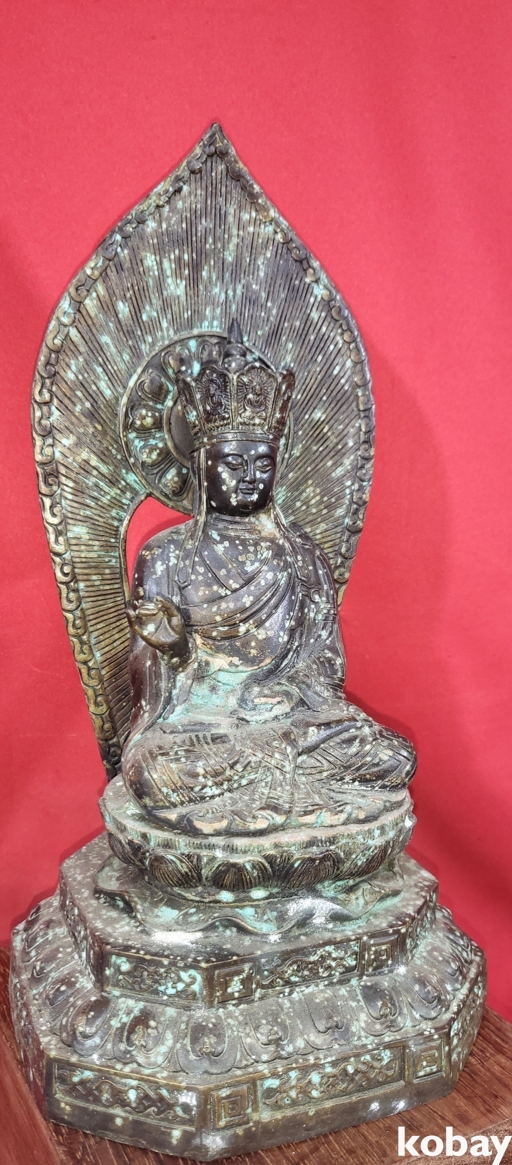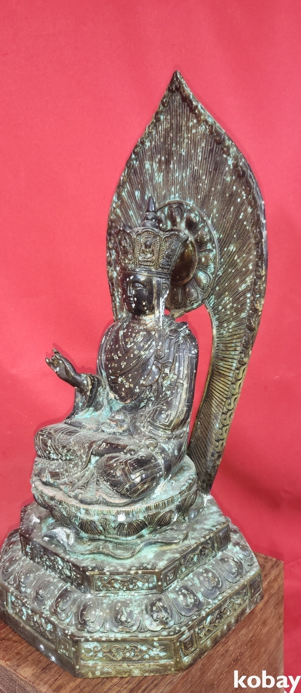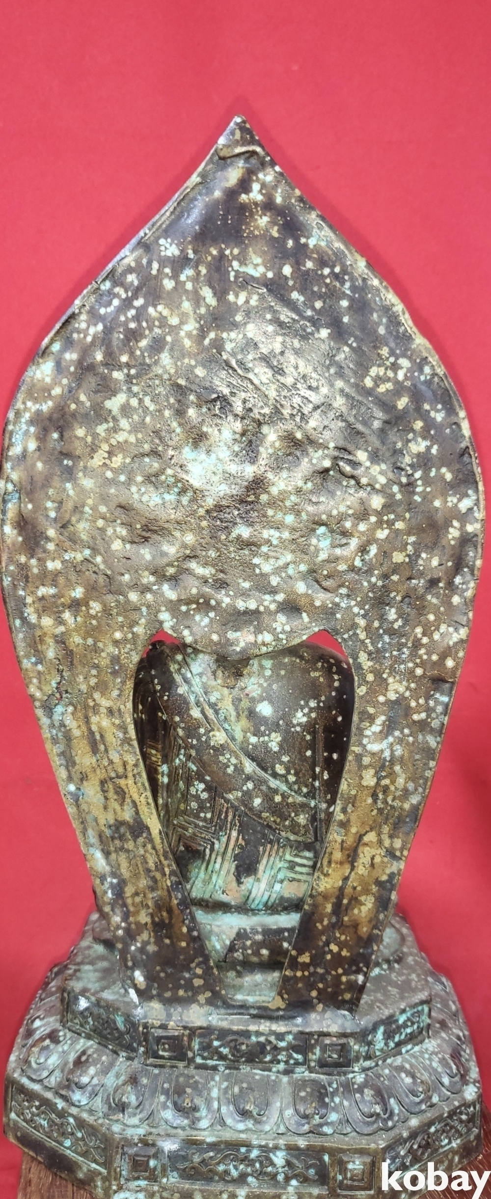 높은 연대를 지닌 청동 연화대 좌정한 광배있는 좌불상(坐佛狀)입니다,