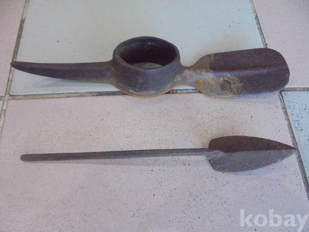 자루만 해맞추면 최고물품되는 양쪽으로 광이와 곡깽이도 되는 다용도사용하고 자루없는 무쇠인두