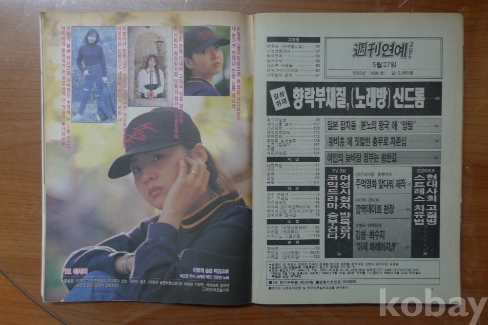 1992년 주간연예 스포츠 잡지 - 표지모델 가수 박준희 -