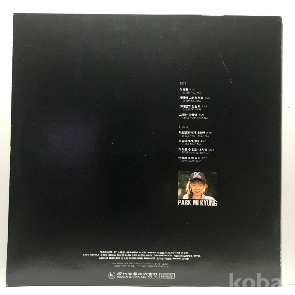 LP 34,810-84 박미경 - 화요일에 비가 내리면 . ` 90 현대 자켓 EX+ 알판 EX 연한 백화
