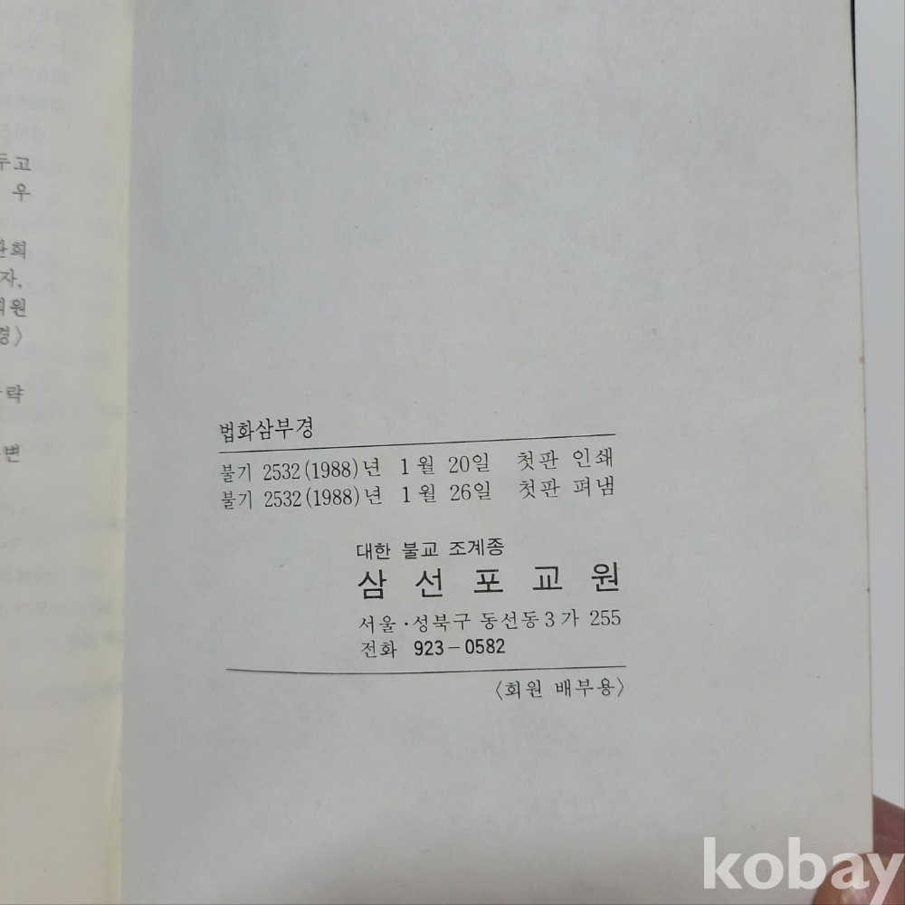 [천원경매] 법화삼부경 ; 대한 불교 조계종 삼선포교원 1988년 초판본 / 회원 배부용