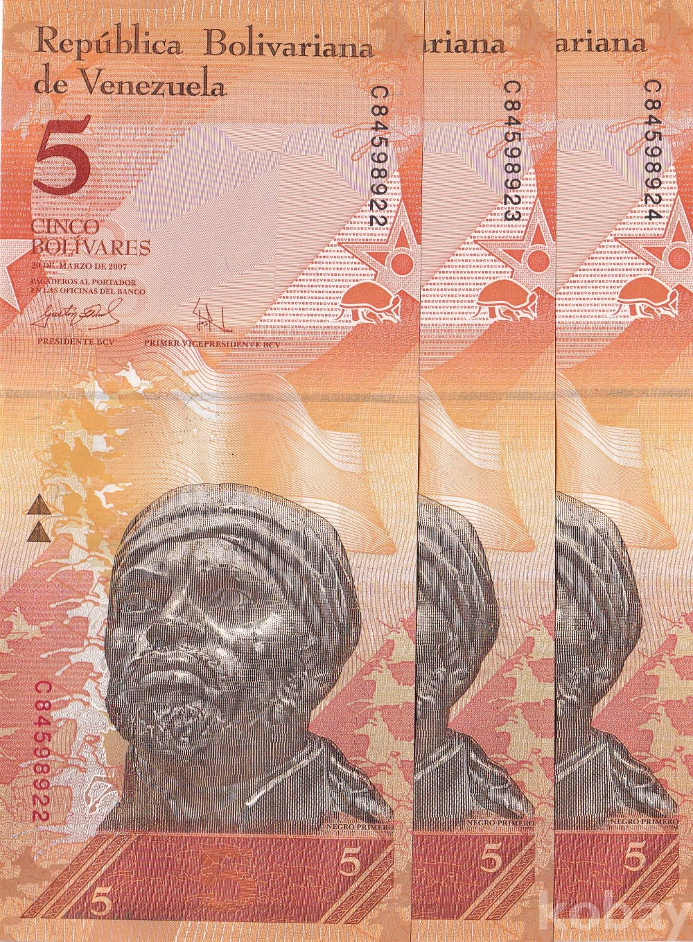 - 베네수엘라 2009년 5 볼리바르 3연번 미사용 지폐