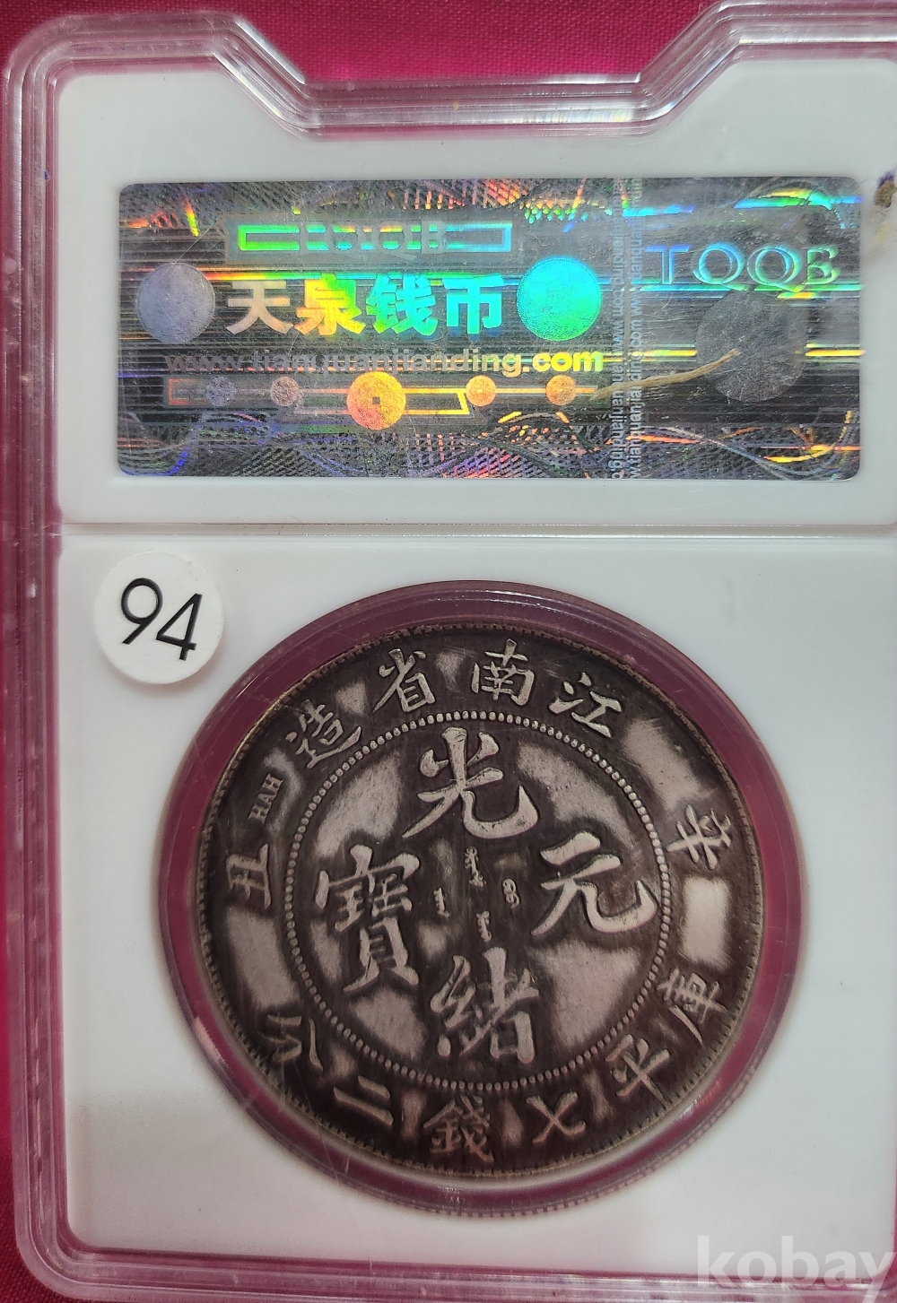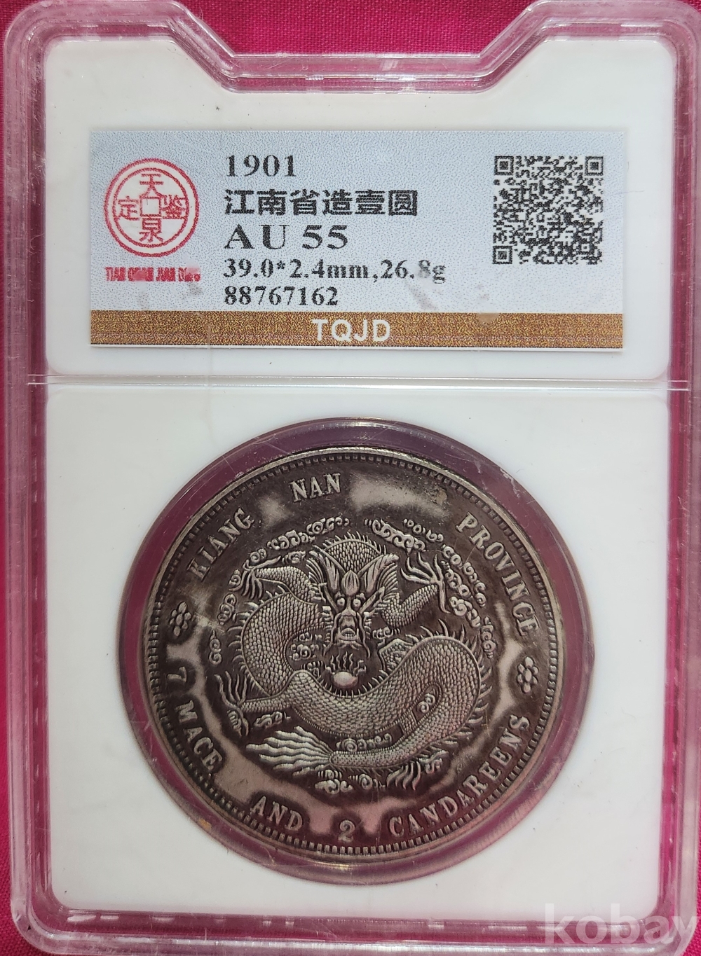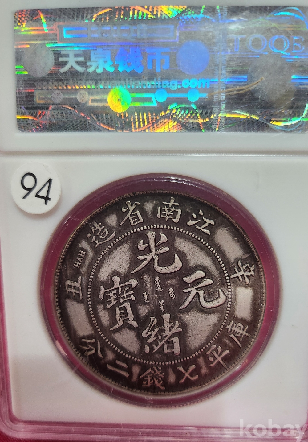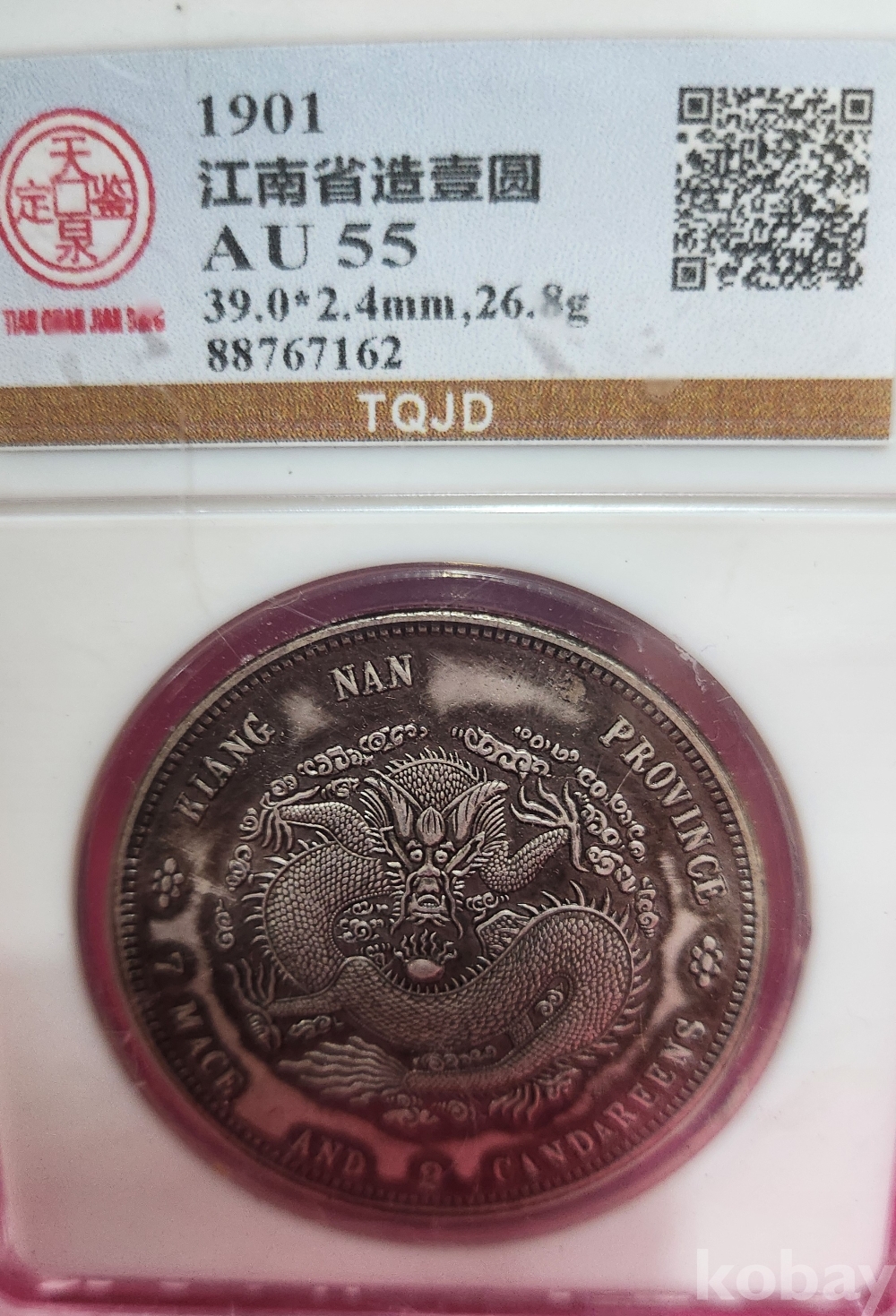 1903년 큐알코드(QR CODE)가 함께하는 은색 광서원보 (光緒元寶) 화패로 밀봉된 상태입니다,