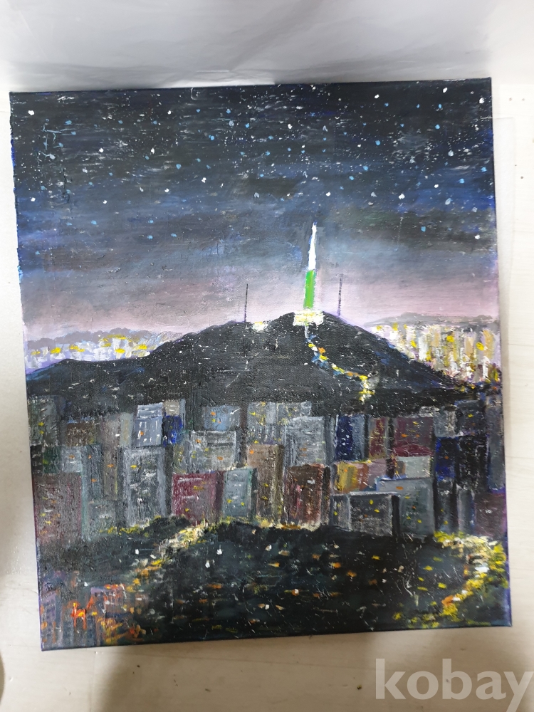 {천원경매} Y-10.0397 유화 밤풍경 그림 캔버스 액자(53*45.5, 묶음배송불가)