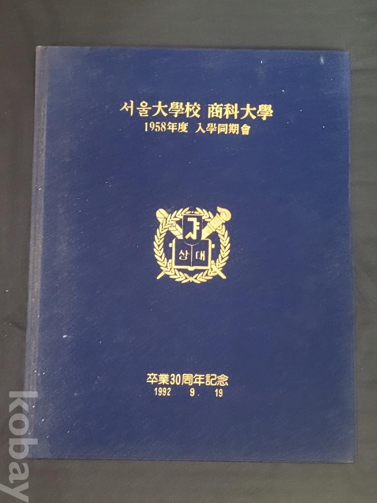 빈티지 1992년 제작 서울대학교 상과대학 1958년도 입학 동기회 졸업 30주년 기념사진 앨범 서적입니다.