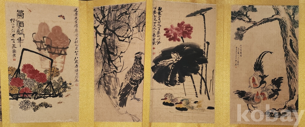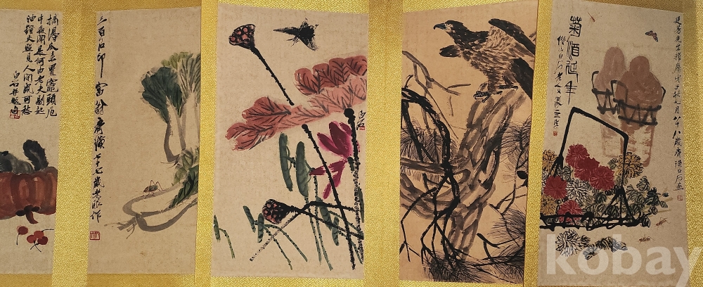 중국화가 제백석(齊白石 ) 꽃과새(花鳥) 그림 10 폭으로 완성된 화책입니다,