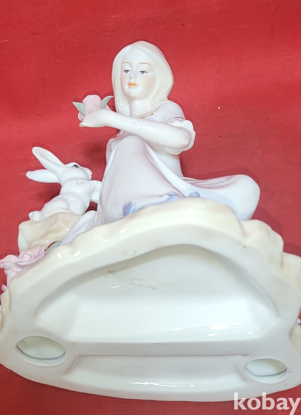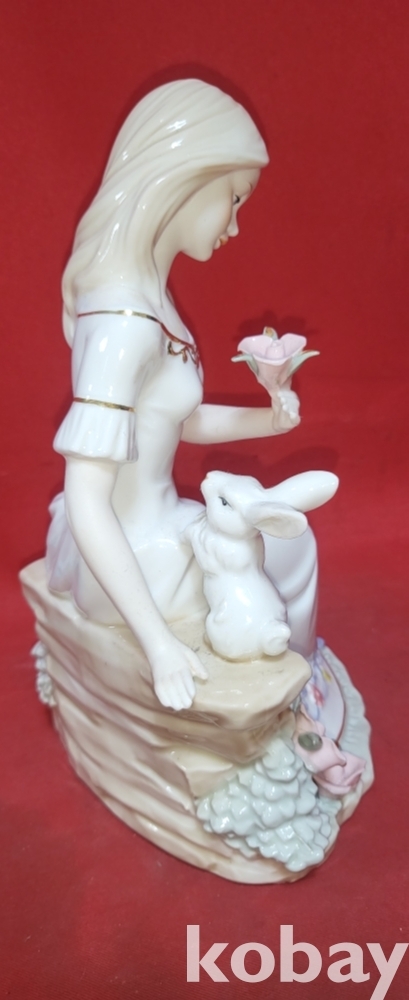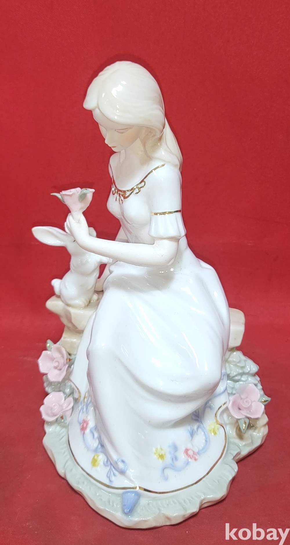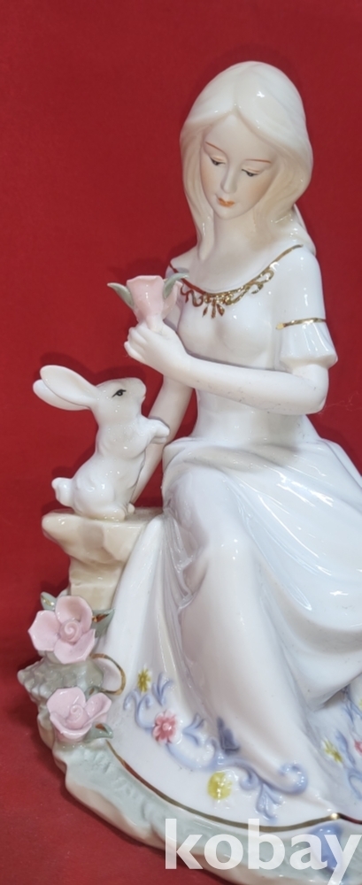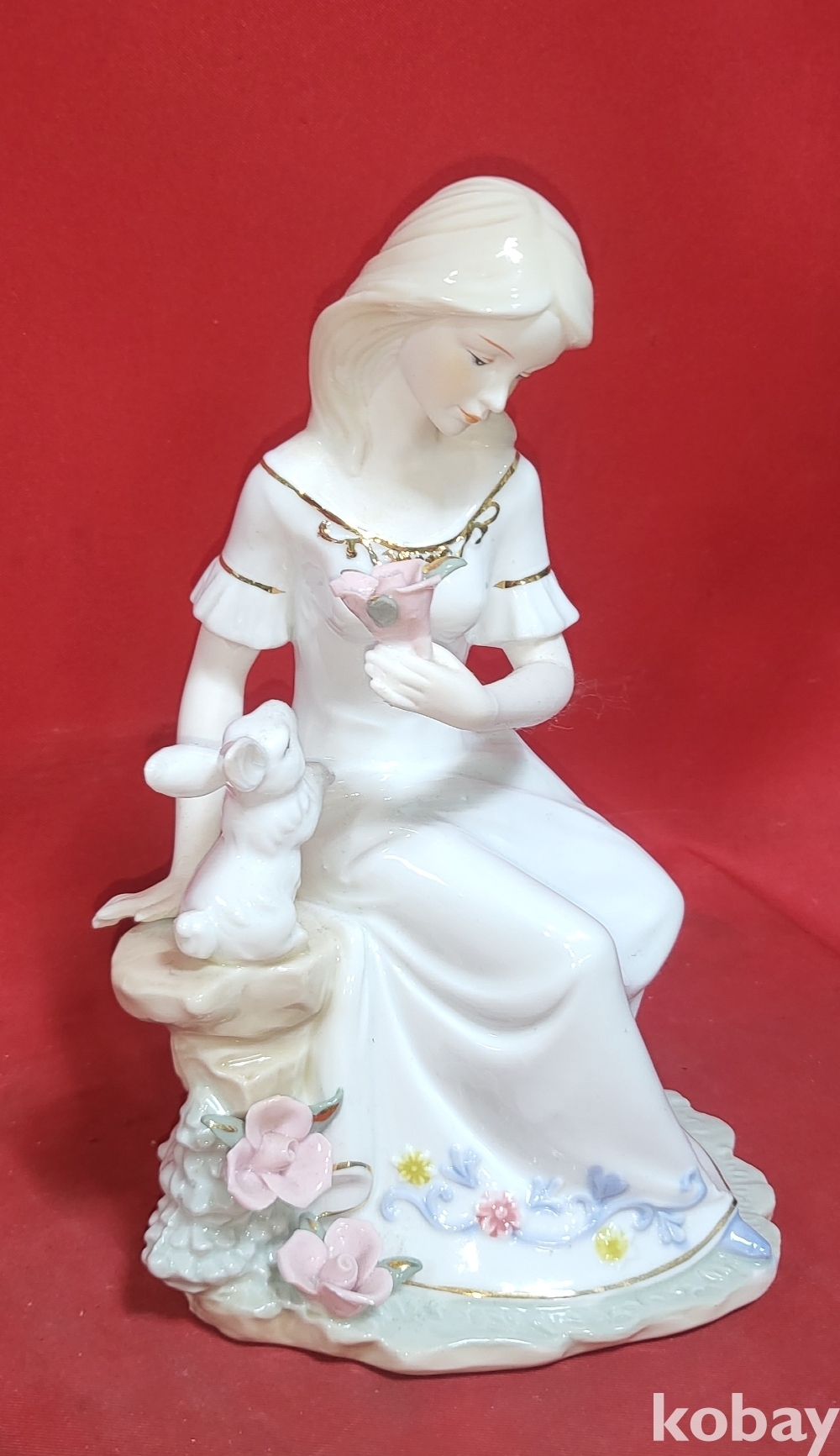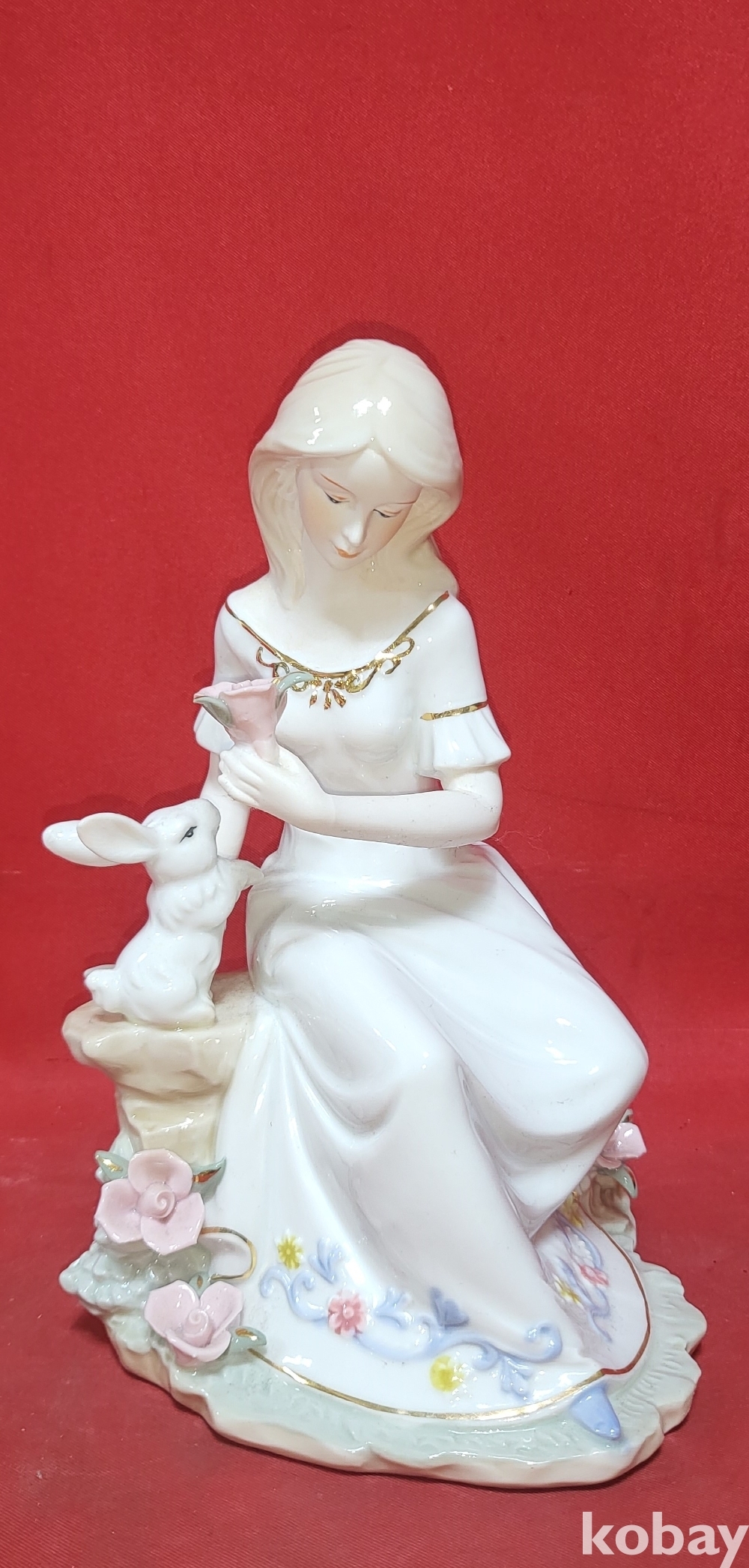 꽃을 들고 토끼와 교감하고 있는 여인의 아름다운 자태를 표상한 작품입니다,