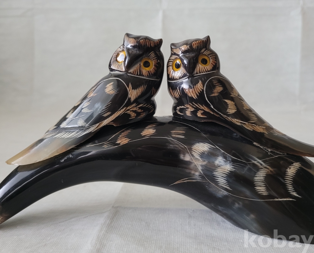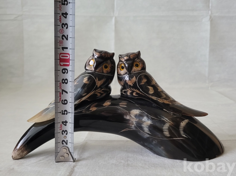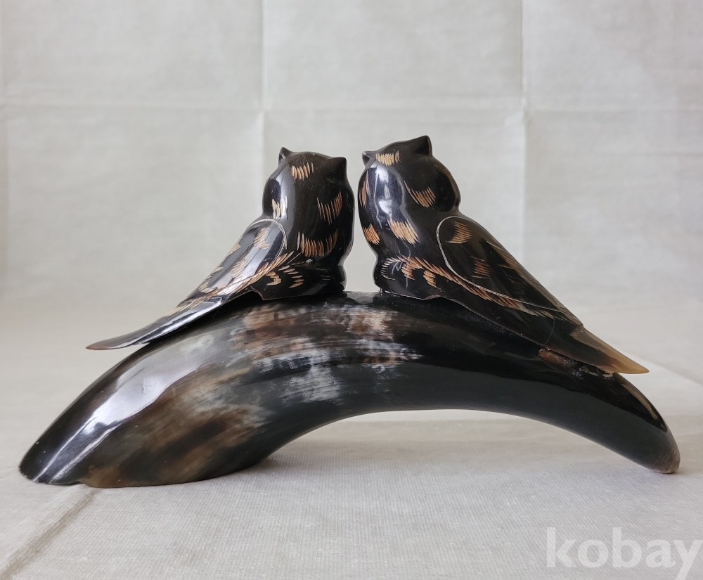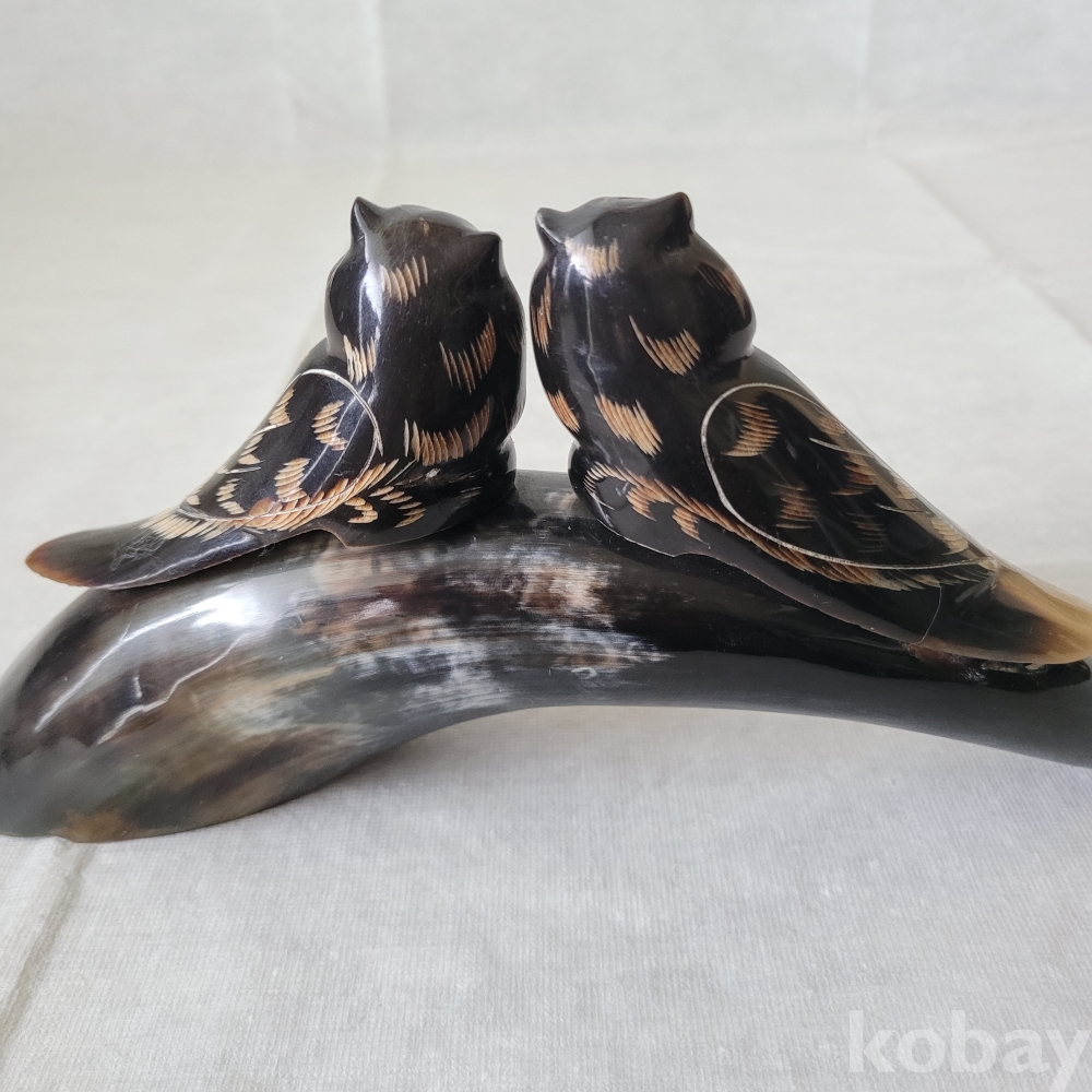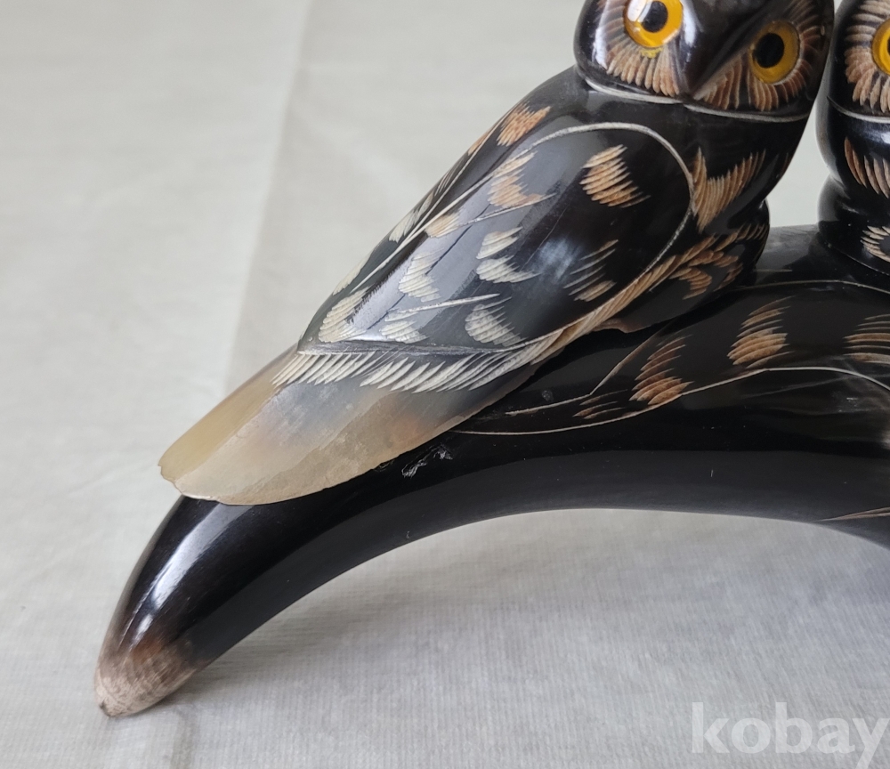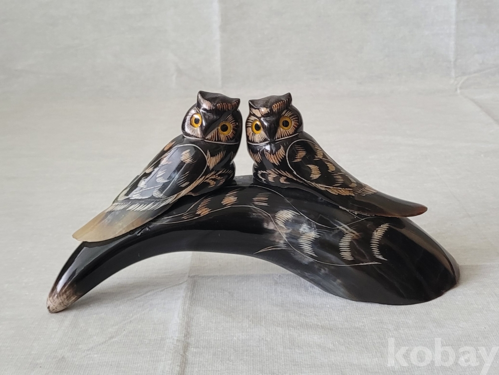 ☆세계사☆물소뿔 부엉이 핸드메이드 조각상