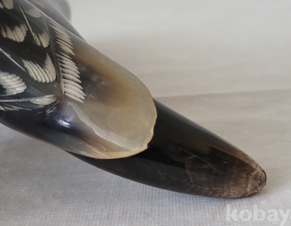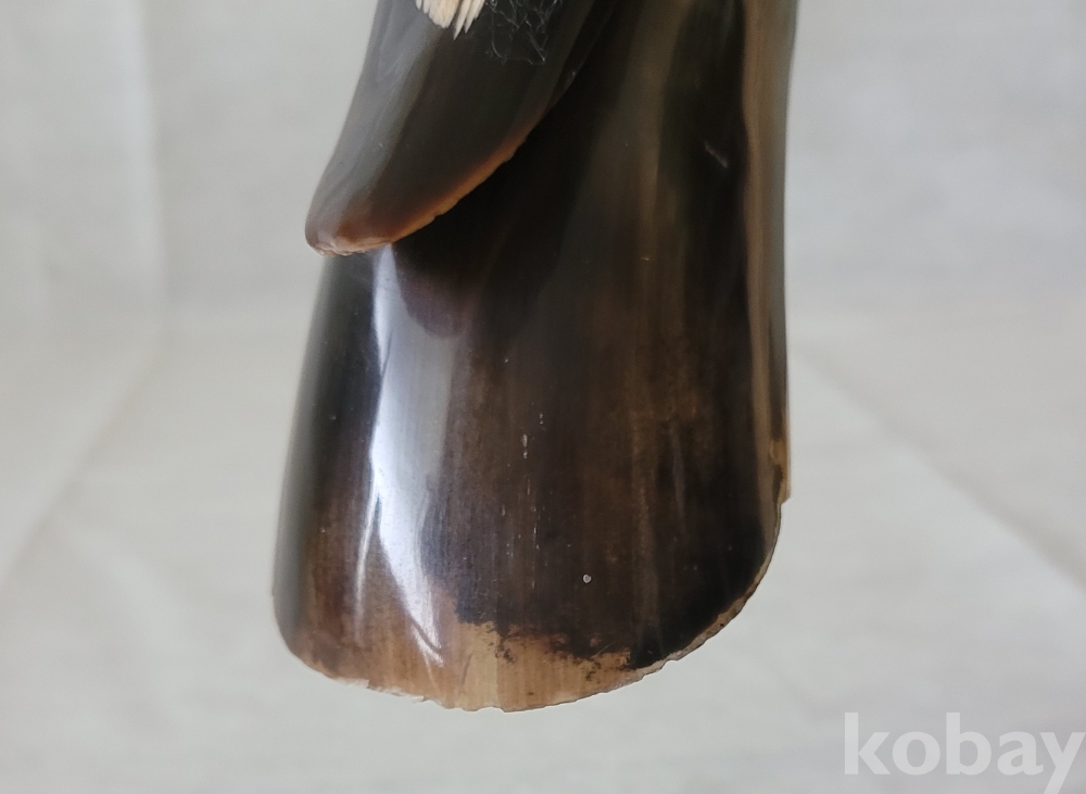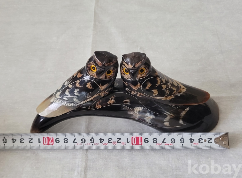 원닷이 물소뿔 부엉이 조각이며 상태는 끝부분에 장식으로인한 살짝튐(7,8,9번사진)있습니다. 크기와함께사진참고해주세요.