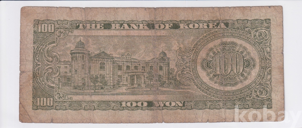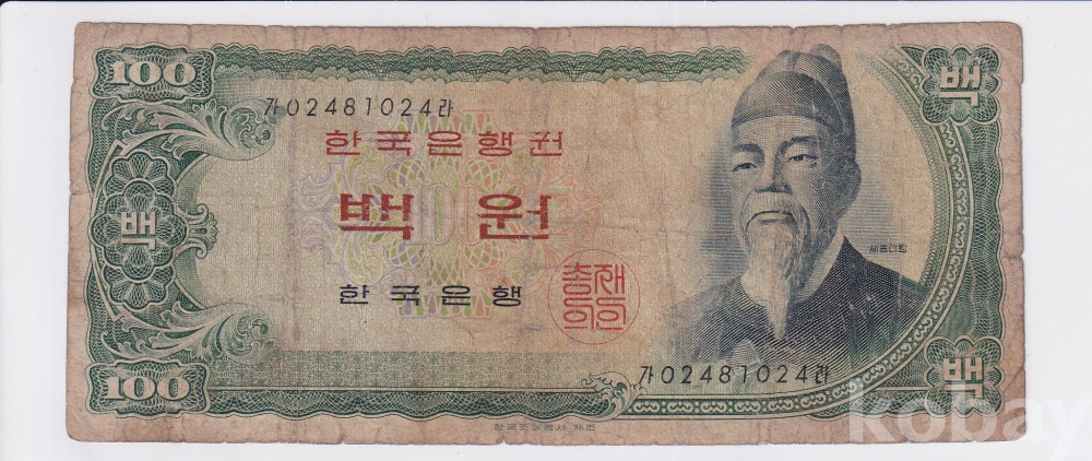 - 한국은행 1965년 세종 백원 가라02포인트 사용제 지폐