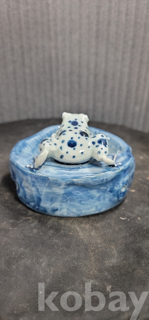 j-14.개구리달린 청화백자필새