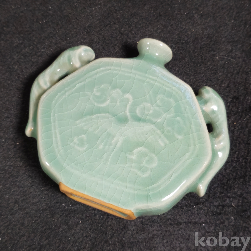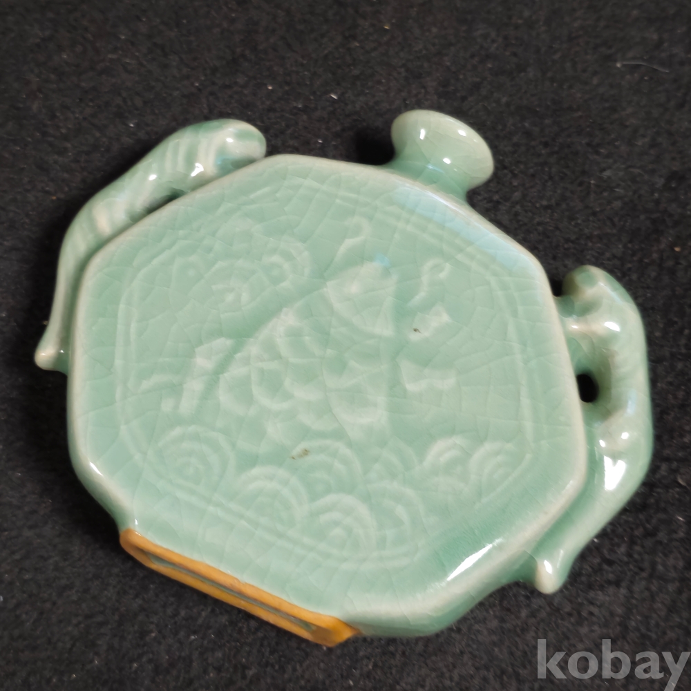 (((근현대사자료/도자기소품))) 오래전 鶴/잉어그림이있는 도자기 소품