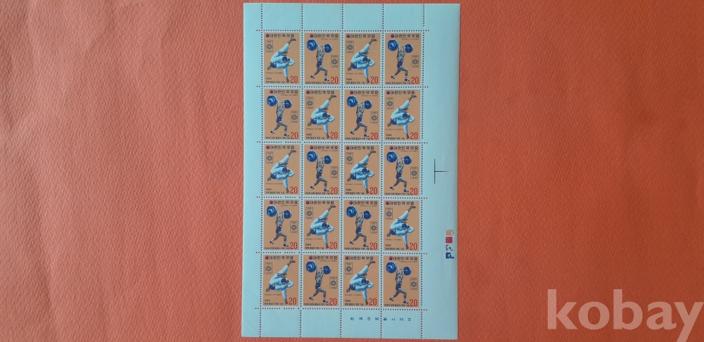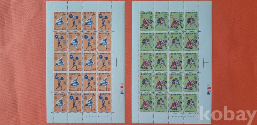 1972년 8월 26일 발행 제20회 뮌헨 올림픽 대회 20매 전지 2종 입니다.
