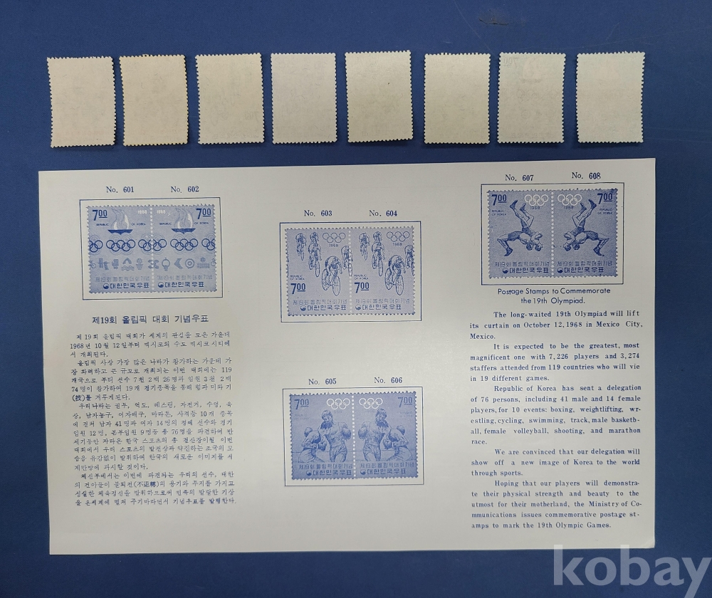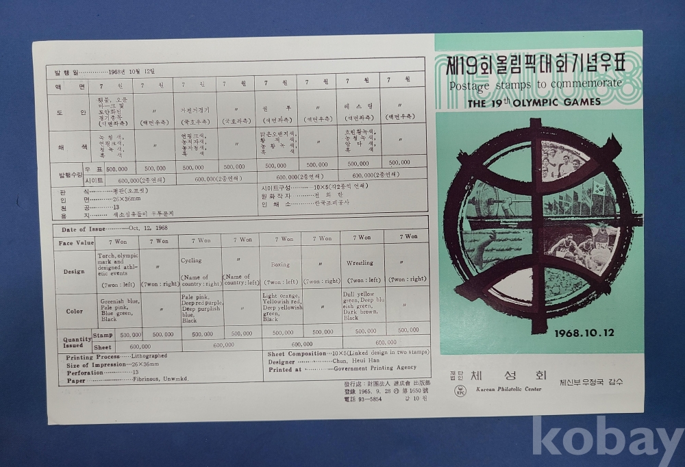 제19회 올림픽대회 기념우표+안내카드(접히지않음)