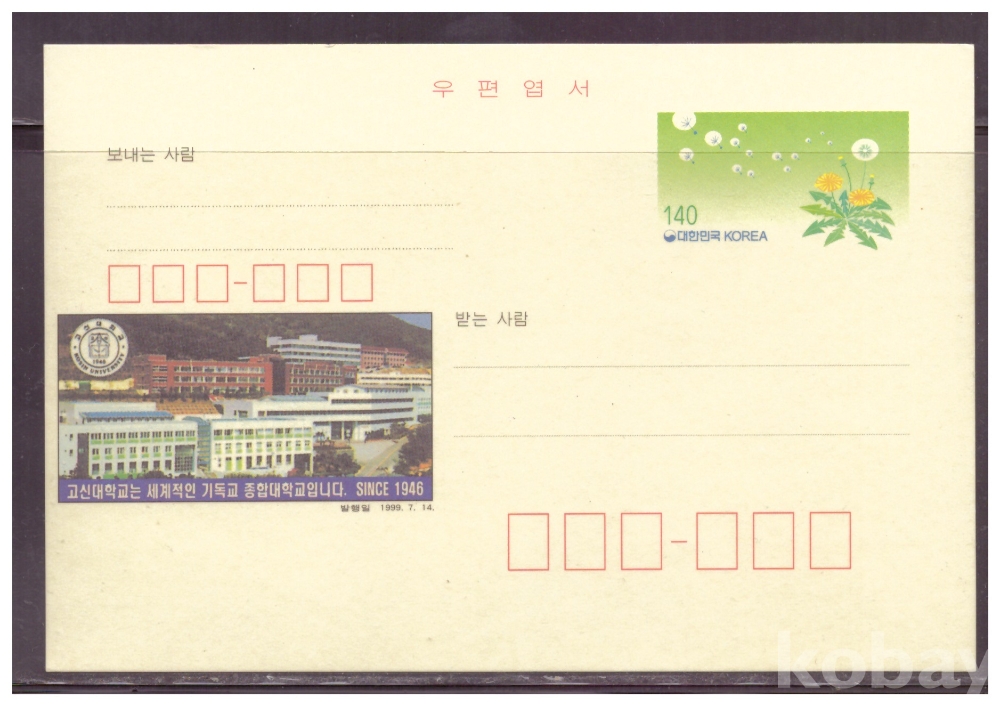 (광고엽서) 1999.7.14 지방판 LAPC315 고신대학교 (민들레 140원)