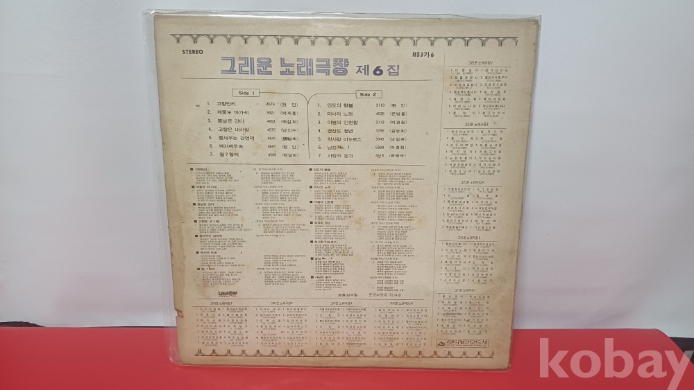 EX : 약간의 마모, 모서리 찢김 존재 음반상태