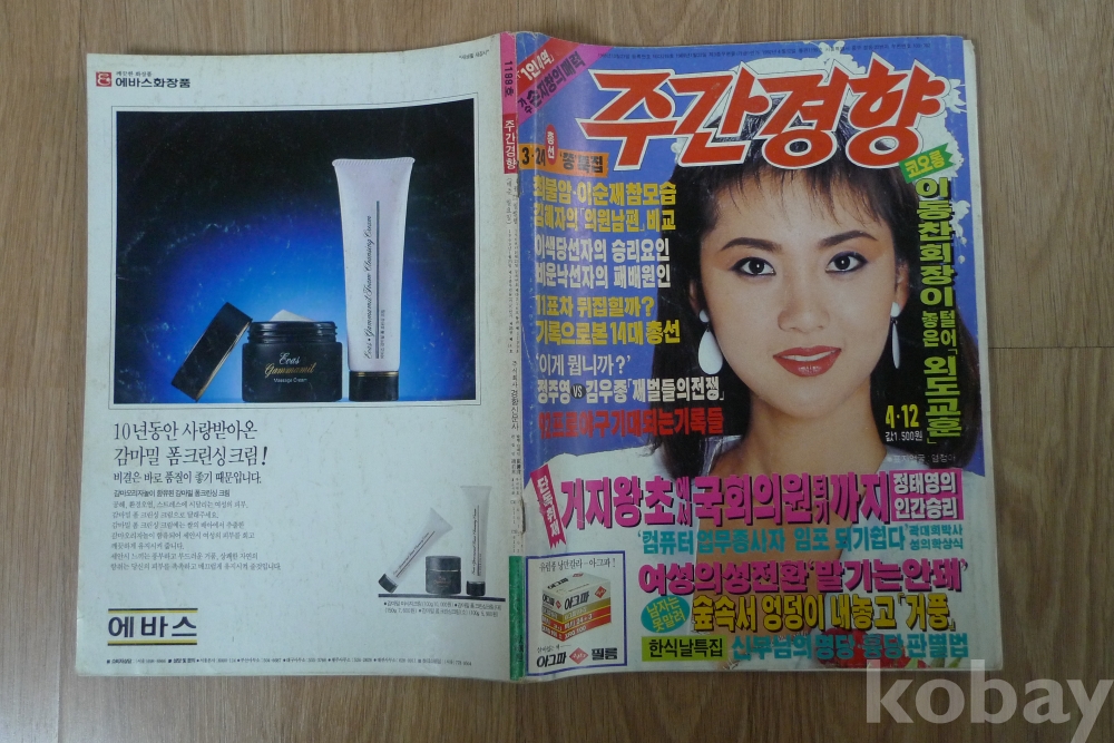 1992년 주간경향 잡지 - 표지모델 탤랜트 염정아 -