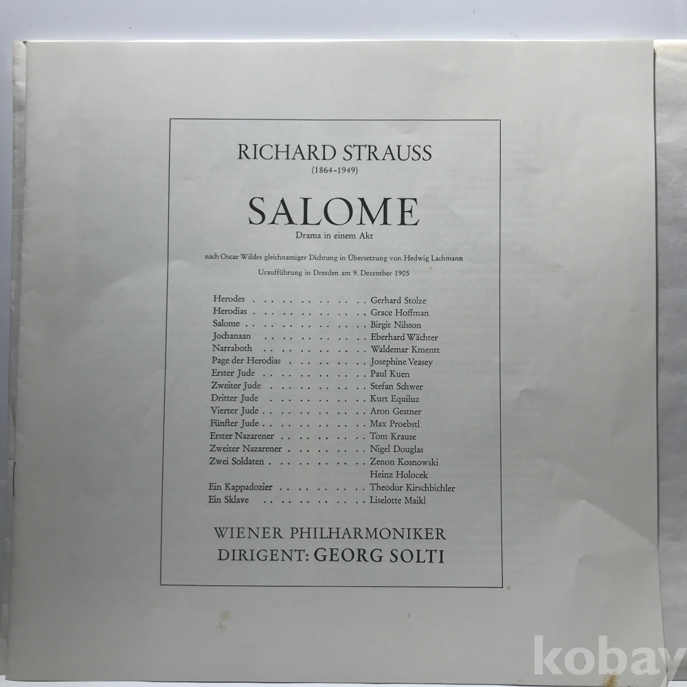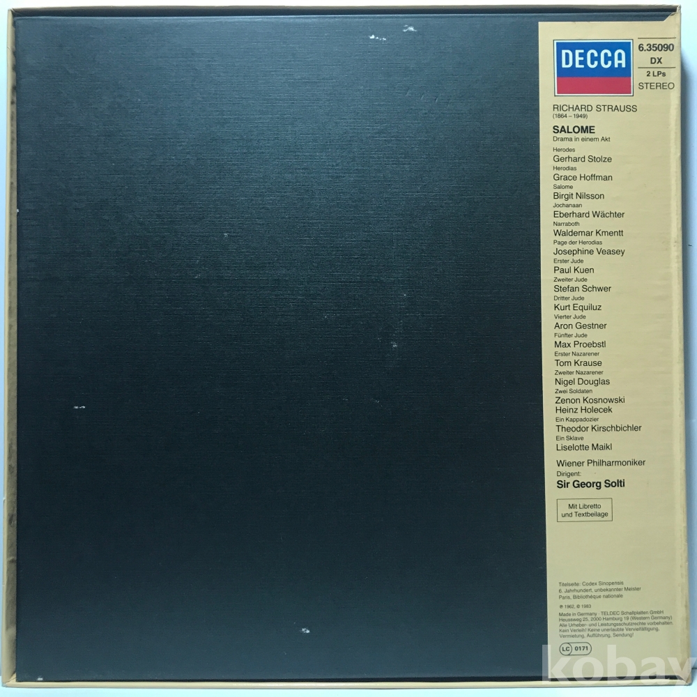 LP 83,660-26 RICHARD STRAUSS salome Gerhard Stolze -GEORG SOLTI 2LP . 자켓 EX 알판 EX+ 83 년제작 수입반