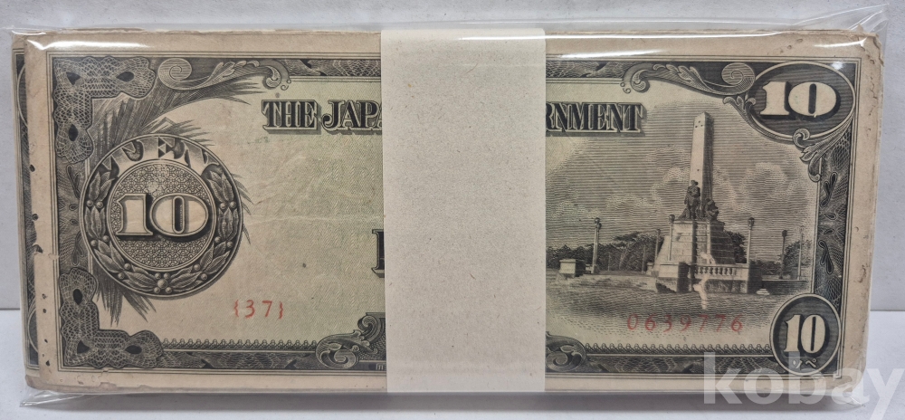 - 태평양 전쟁 일본 군표 10페소 필리핀 사용 약 100장 다발- 군용 수표