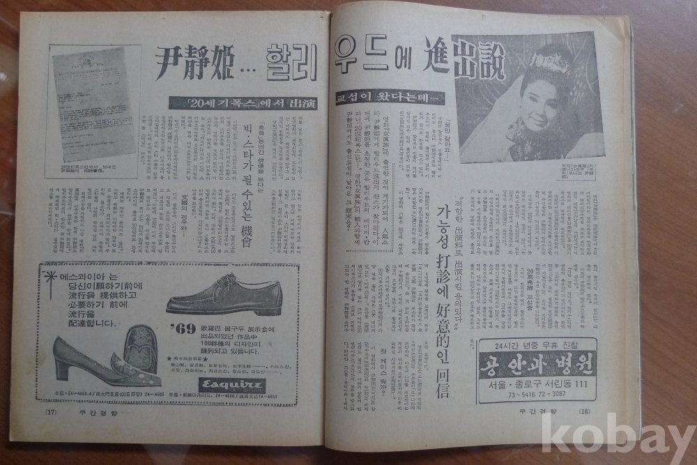 1970년 주간경향 잡지 - 표지모델 탤랜트 신숙 -