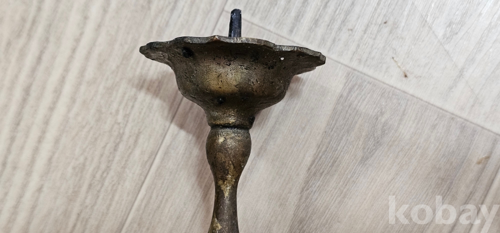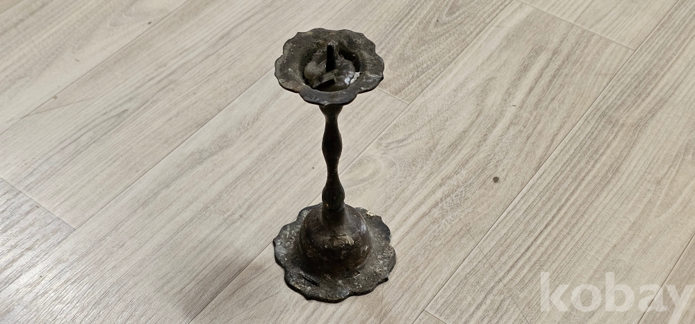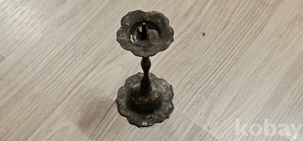 땟물이 끼인 오래된 작은 촛대