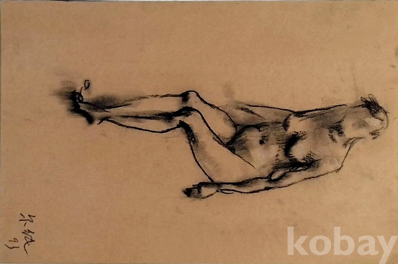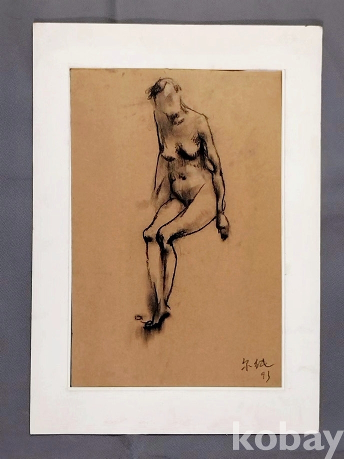 중국 프랑스 저명유화가 라이순(罗尔纯) 1993년 목탄크로키소묘 누드