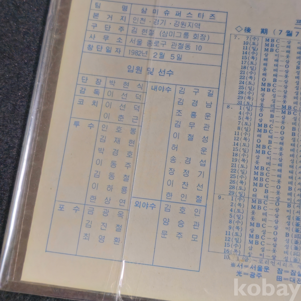 (((프로야구자료))) 1982년 추억의 삼미슈퍼스타즈 책바침