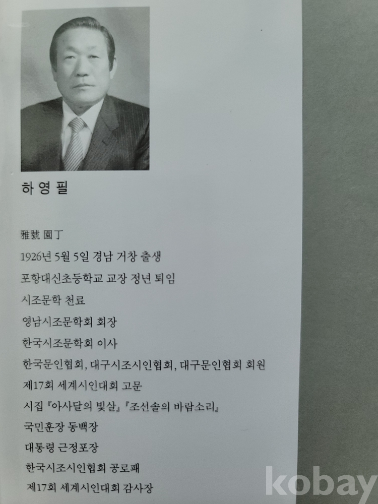 하영필(경상남도 거창: 1926~2023) 저자서명 시조집.