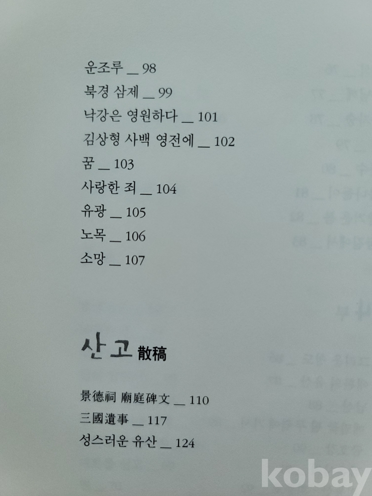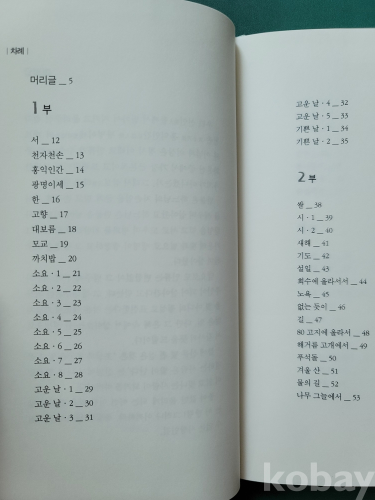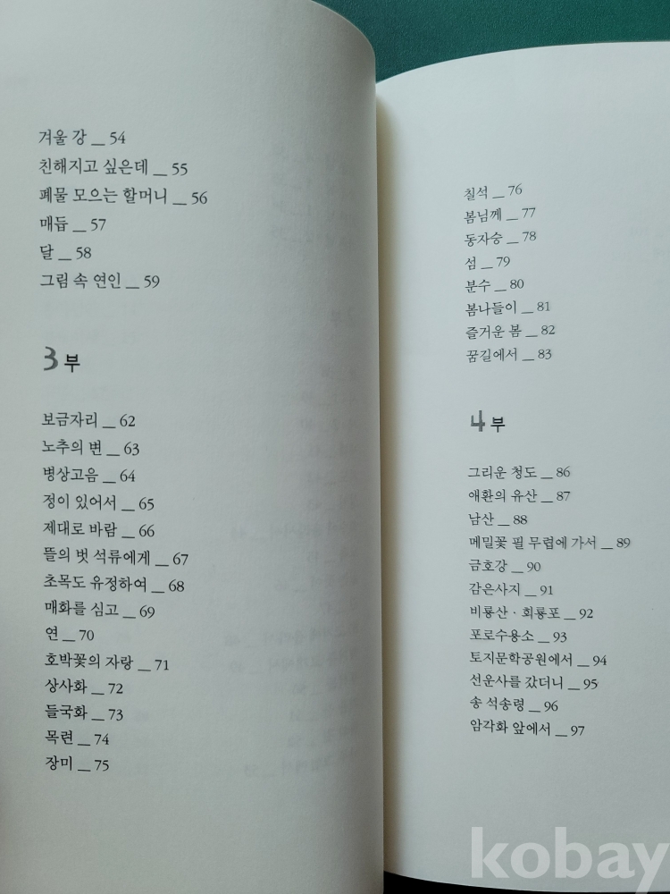 저자 序文. 4부 89편의 시편과 3편의 산문 수록.