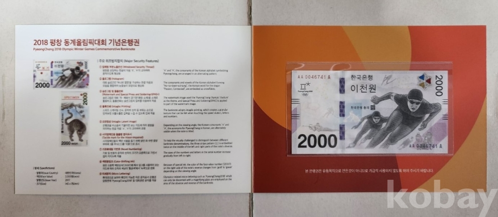 -대한민국 평창동계 올림픽기념 지폐첩 초판 AAA004포인트 입니다.