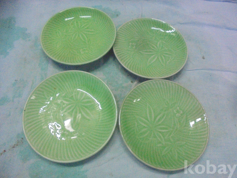민속품자료 ㅡ11ㅡ인삼문양외사기접시네개